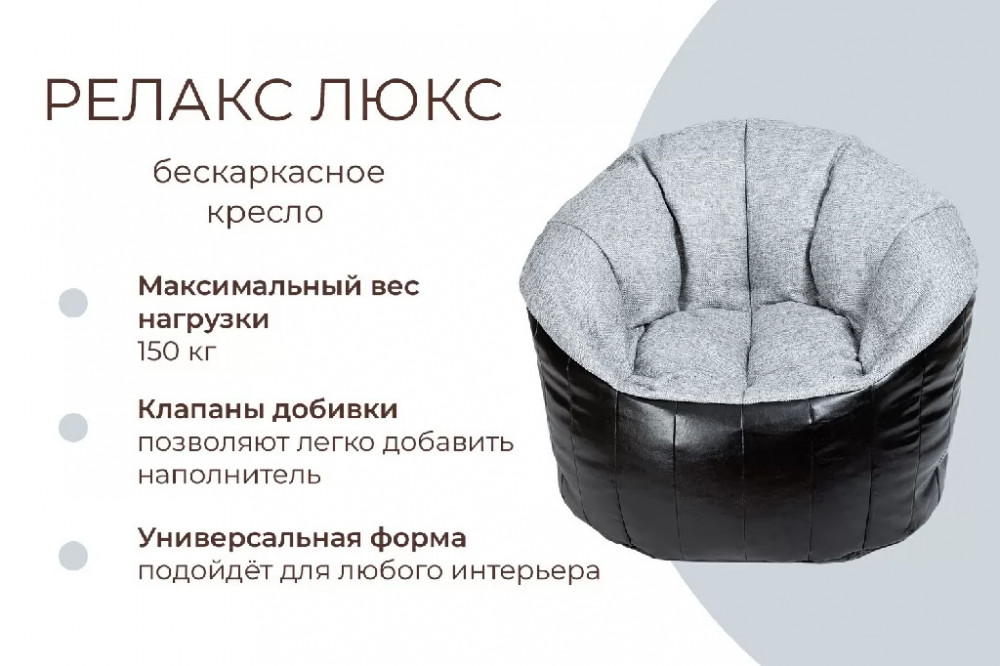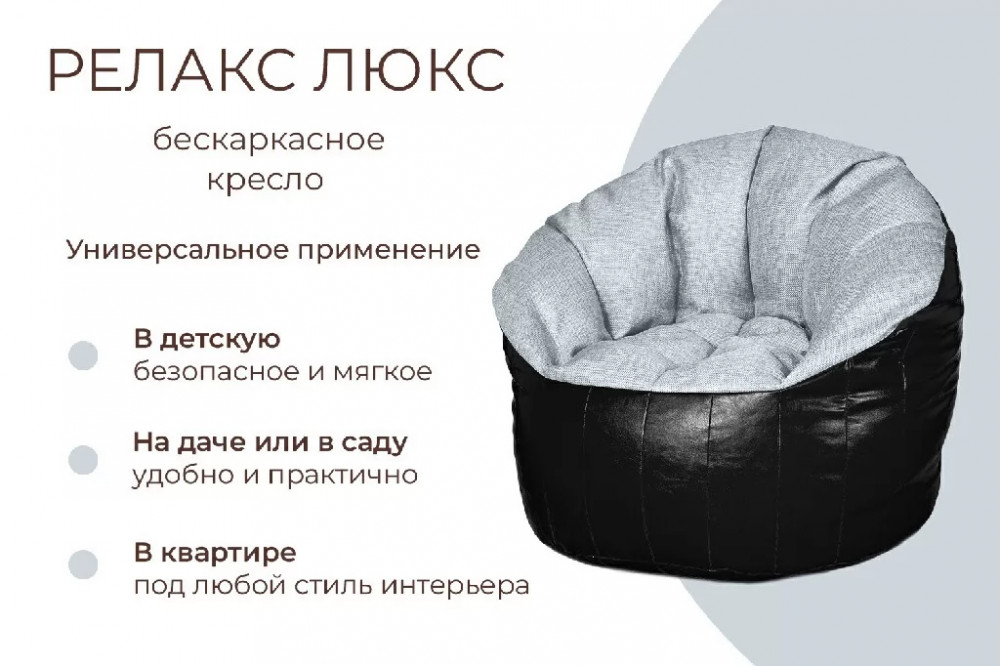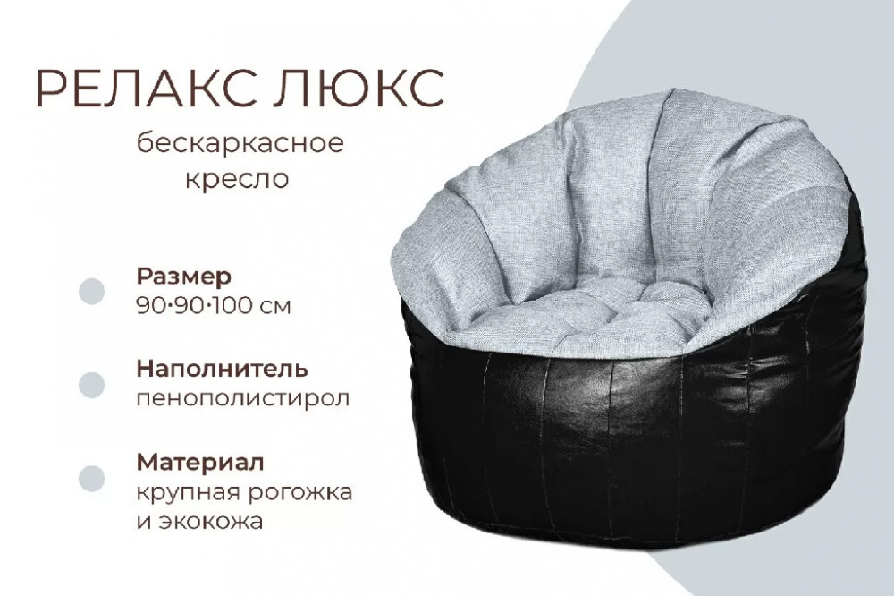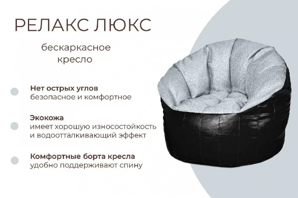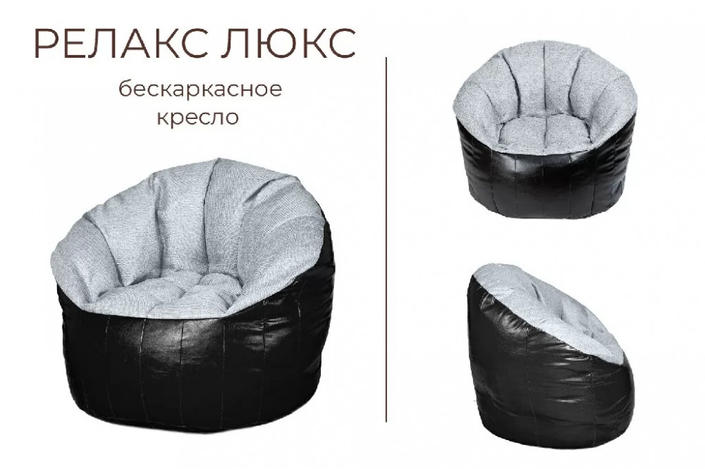 Бескаркасное кресло-пуф Relax Lux, цвет серо-черный