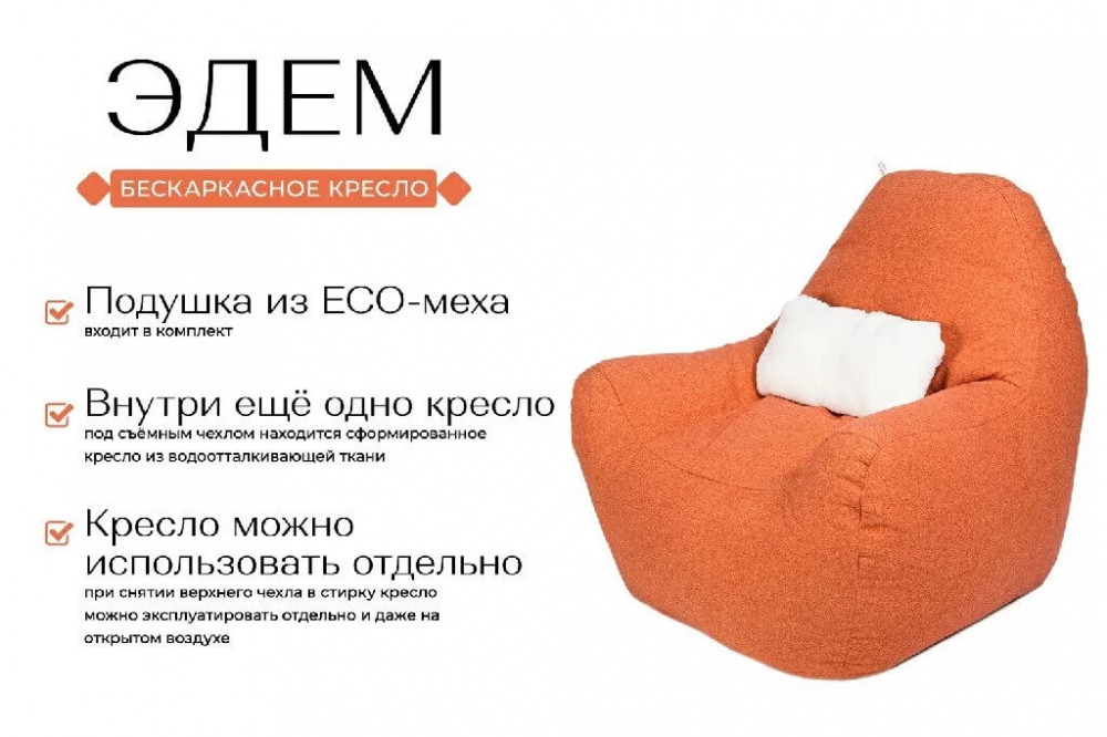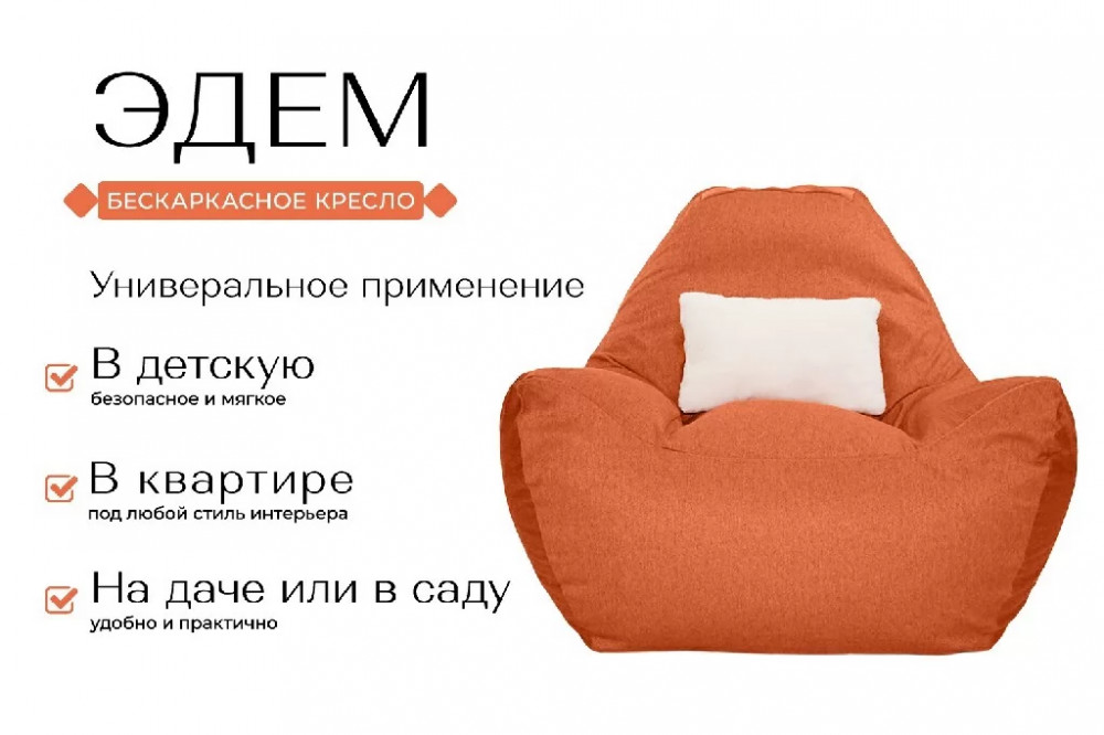 Бескаркасное кресло Эдем, рогожка оранжевый