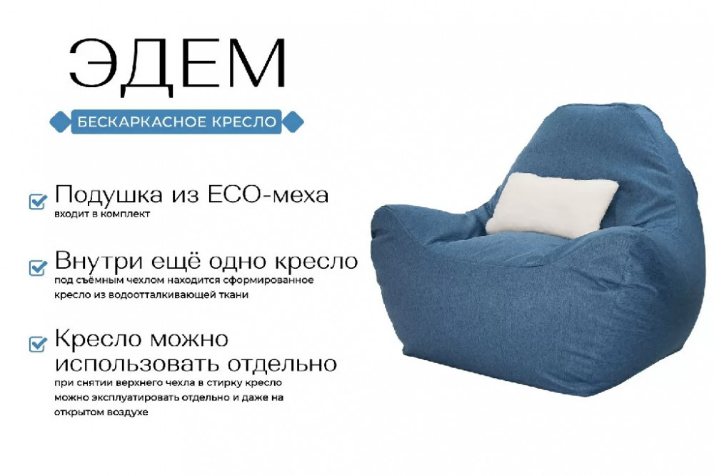 Пуф кресло мешок ЭДЕМ из искусственного меха - большое, мягкое и уютное кресло, изделие большого размера удобной формы- очень понравится всем взрослым, добавит настроение уюта и новые эмоции в отдых с семьей и друзьями. Кресло выполнено в современном, универсальном стиле, подойдет для любого интерьера.