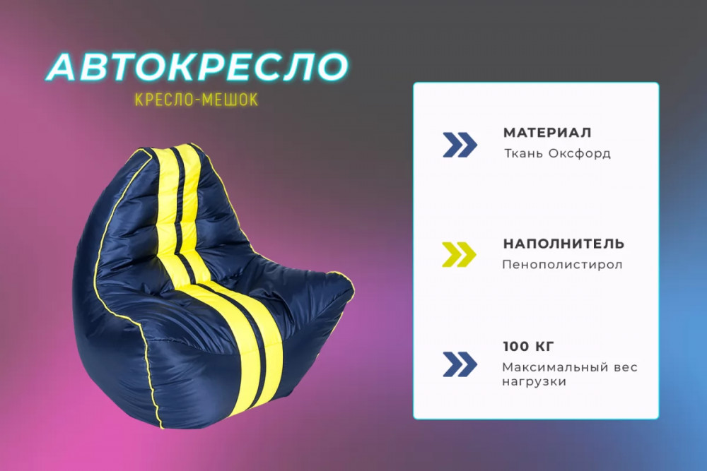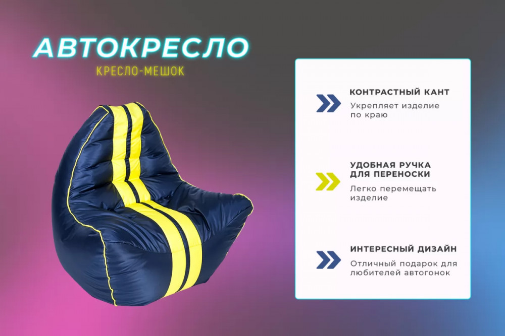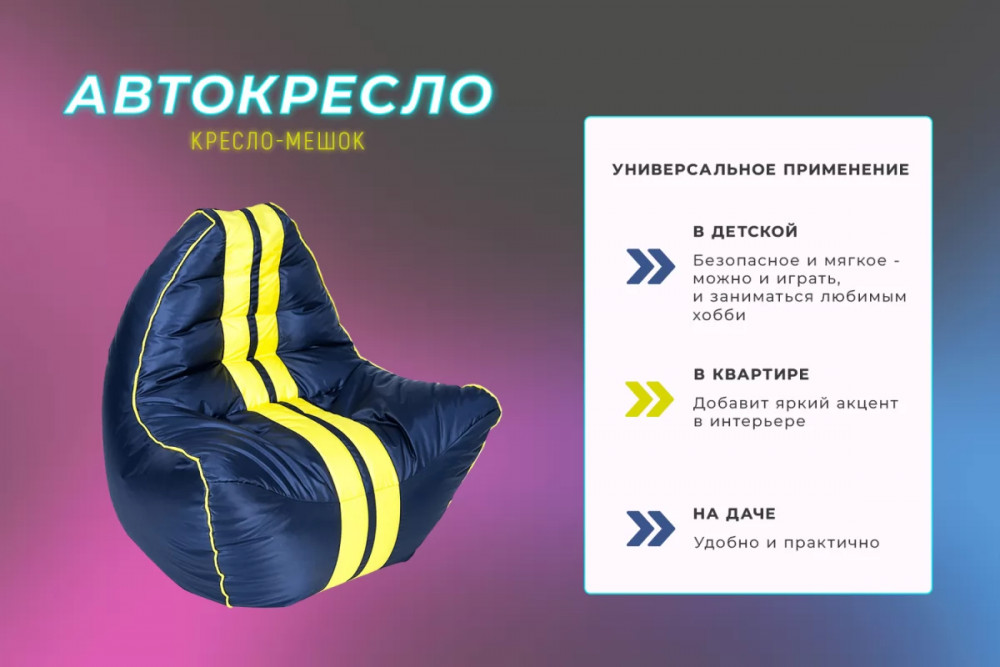Бескарскасное кресло Авто,цвет Черно-желтый
