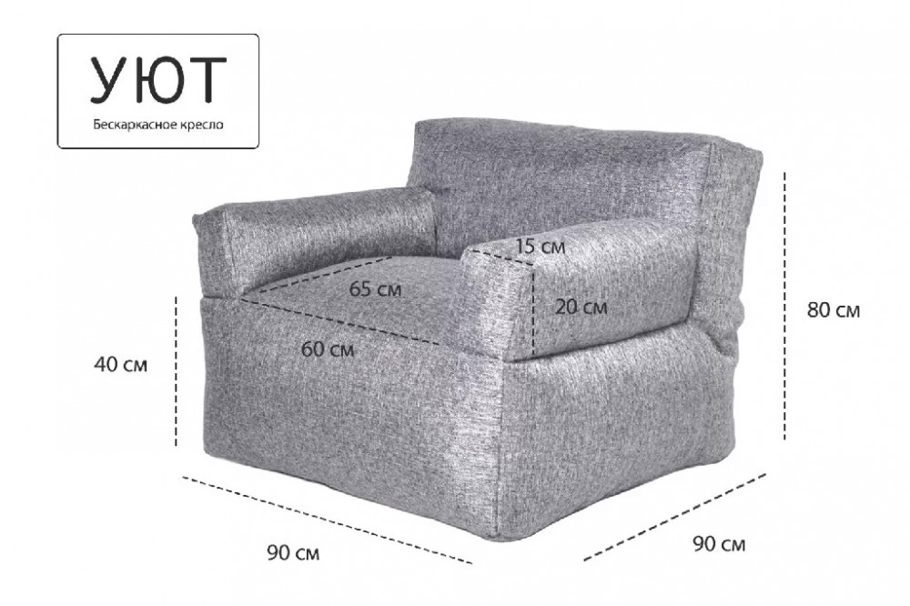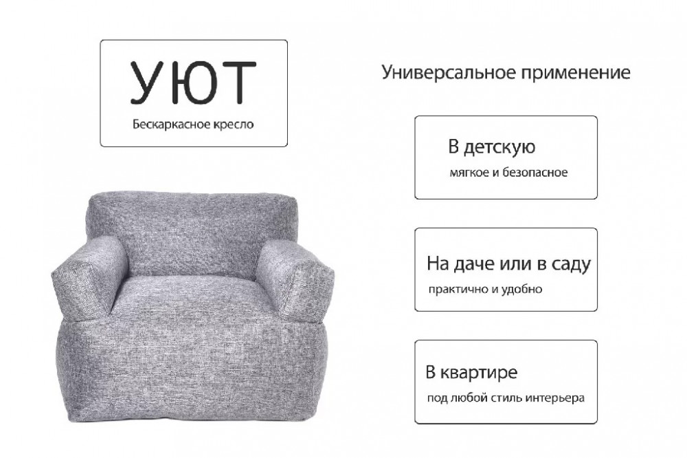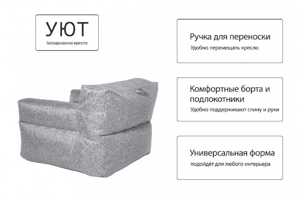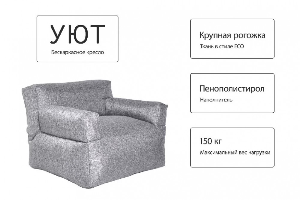Бескарскасное кресло УЮТ, рогожка серый