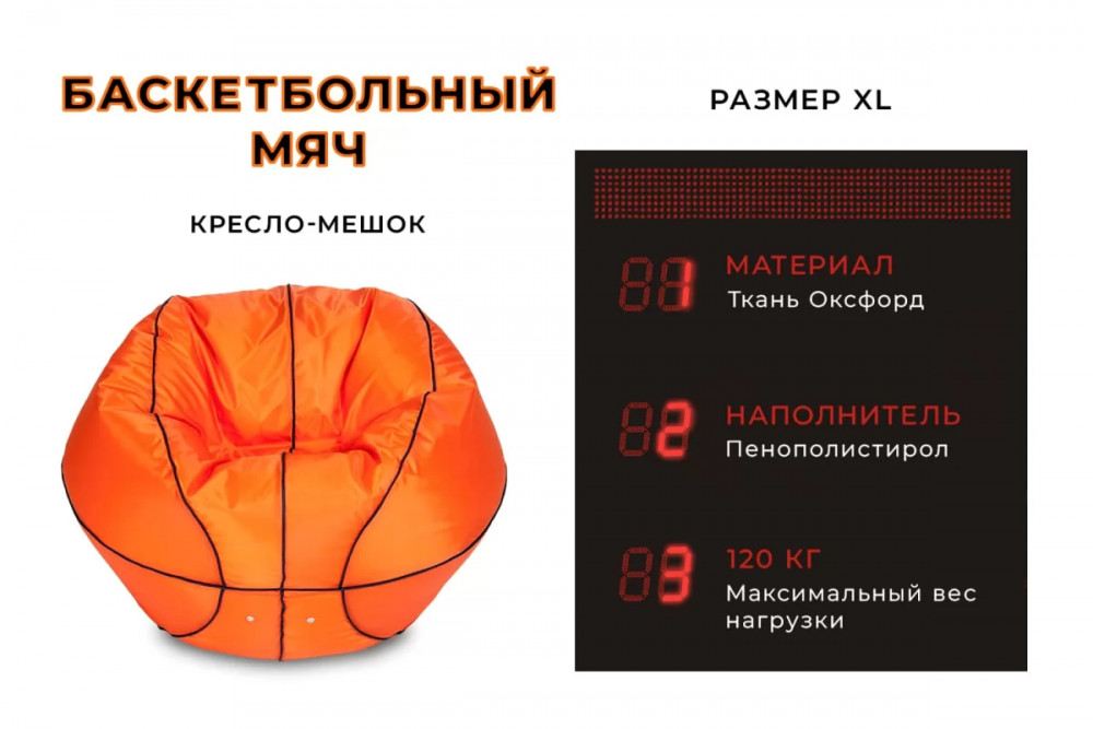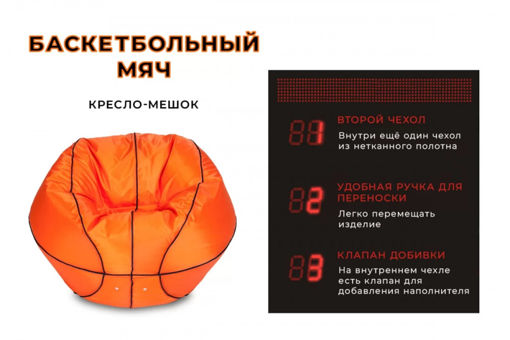 Яркое и необычное кресло-мешок "баскетбольный мяч".