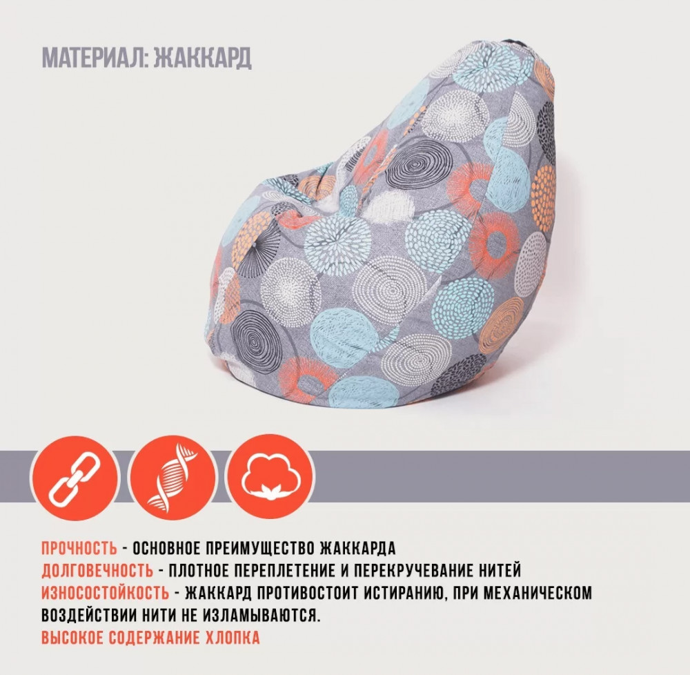 Кресло-мешок Груша средняя, Жаккард, цвет Фреш рингс
