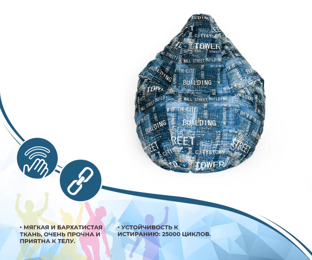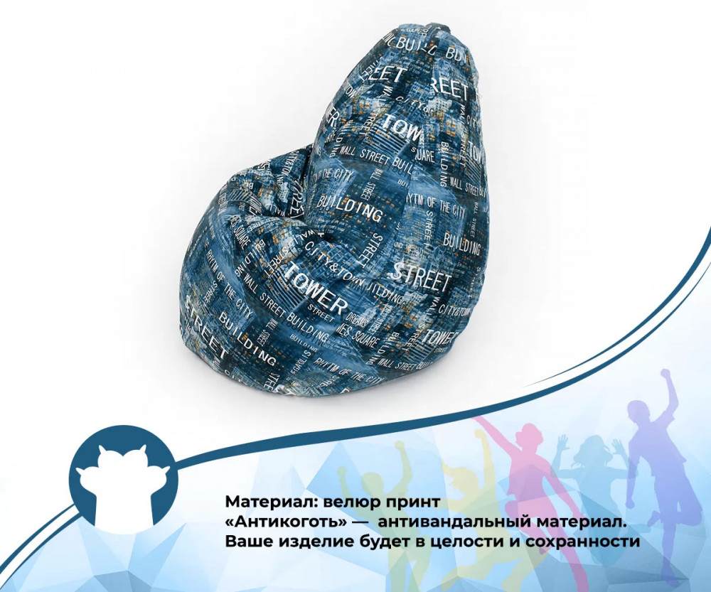 Кресло-мешок Груша средняя, велюр, цвет Централ деним