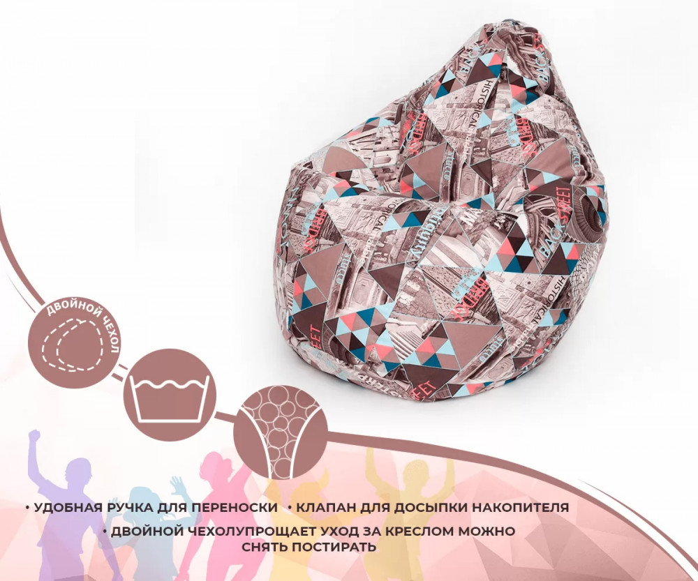 Кресло-мешок Груша средняя, велюр, цвет Геометрия браун