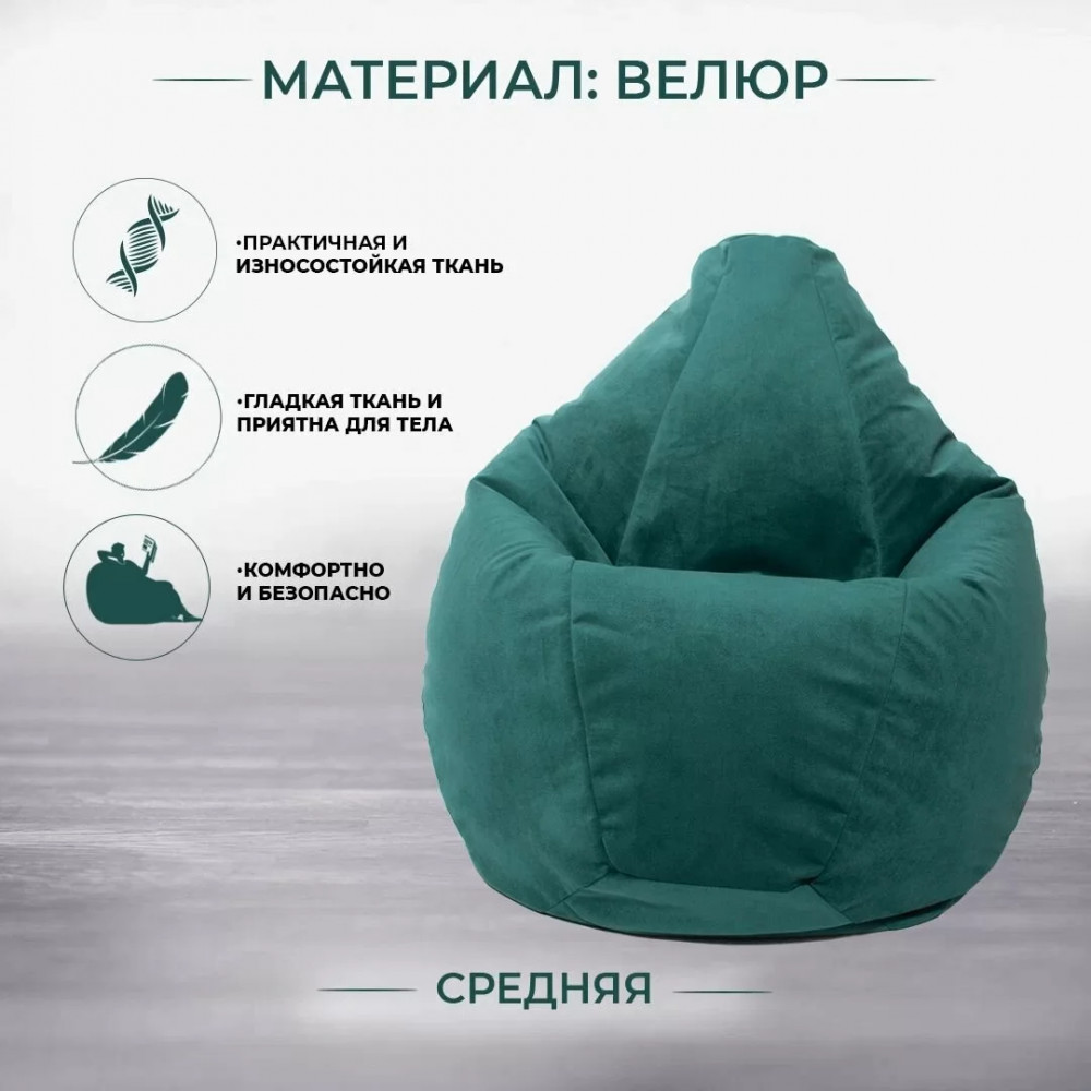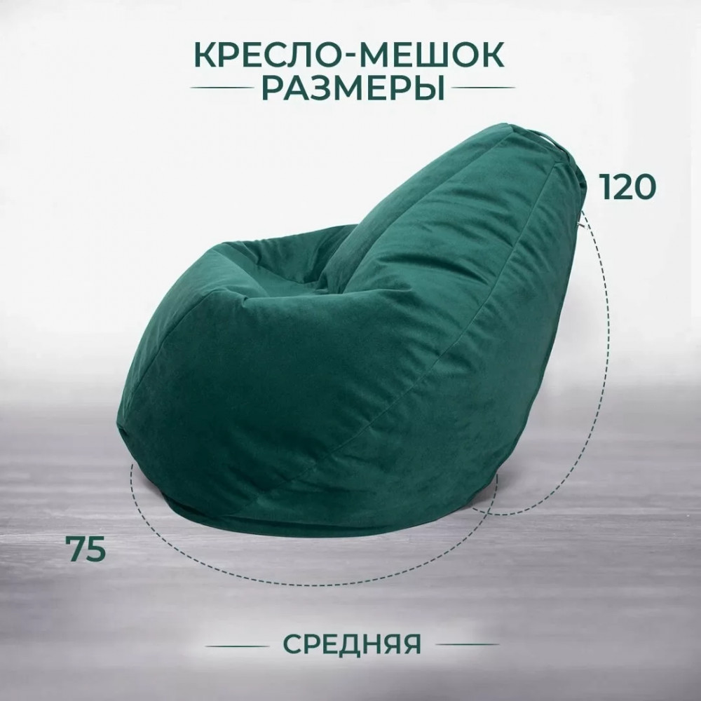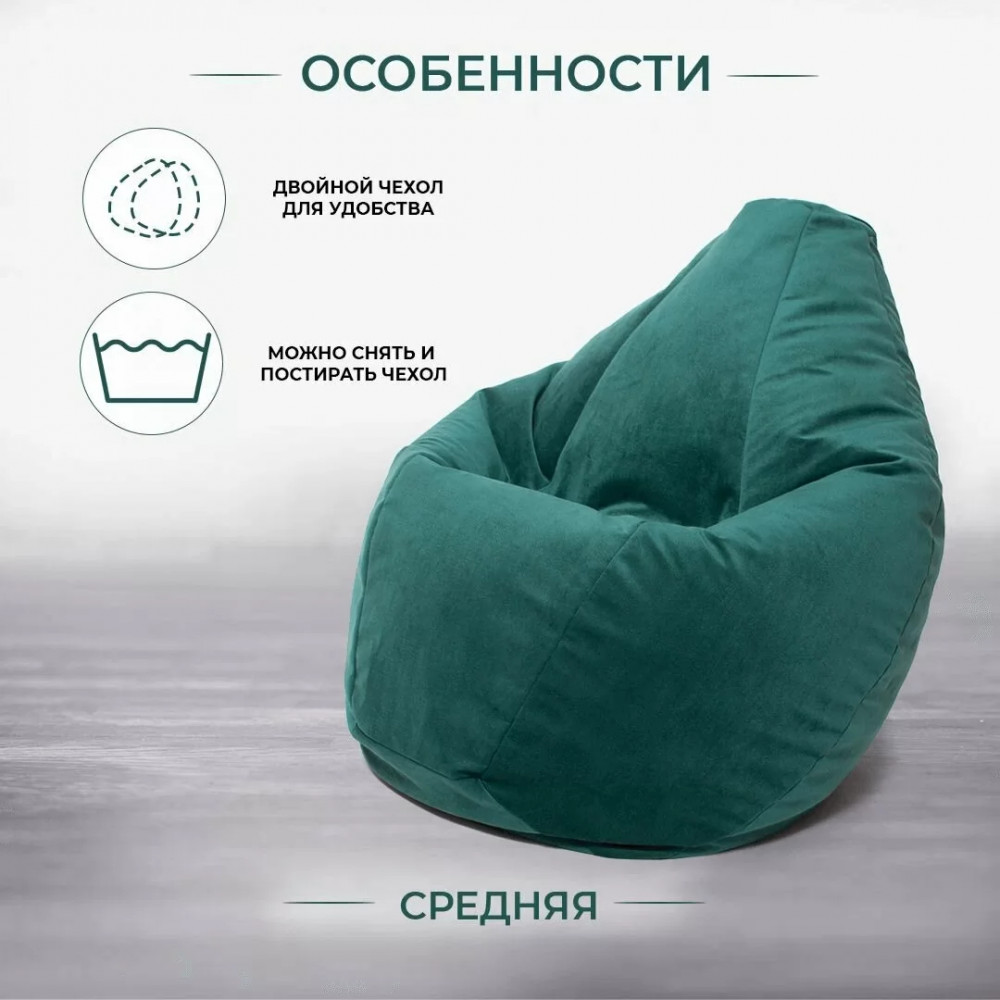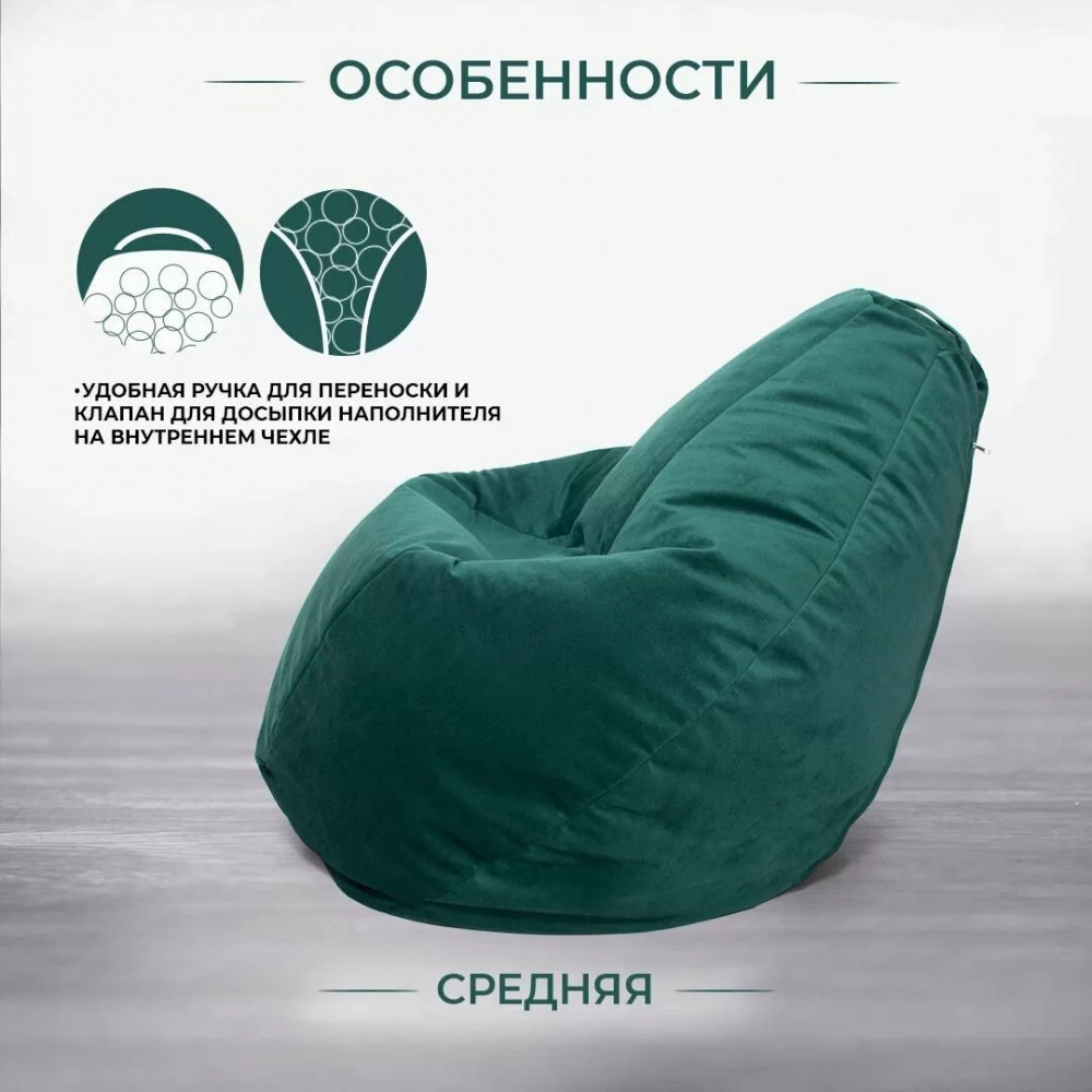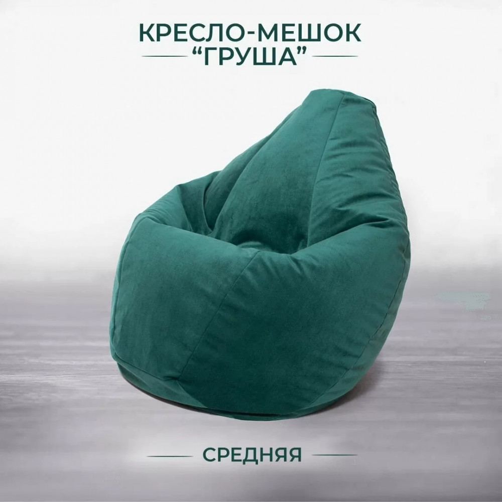 Кресло-мешок Груша средняя, велюр, цвет Изумруд