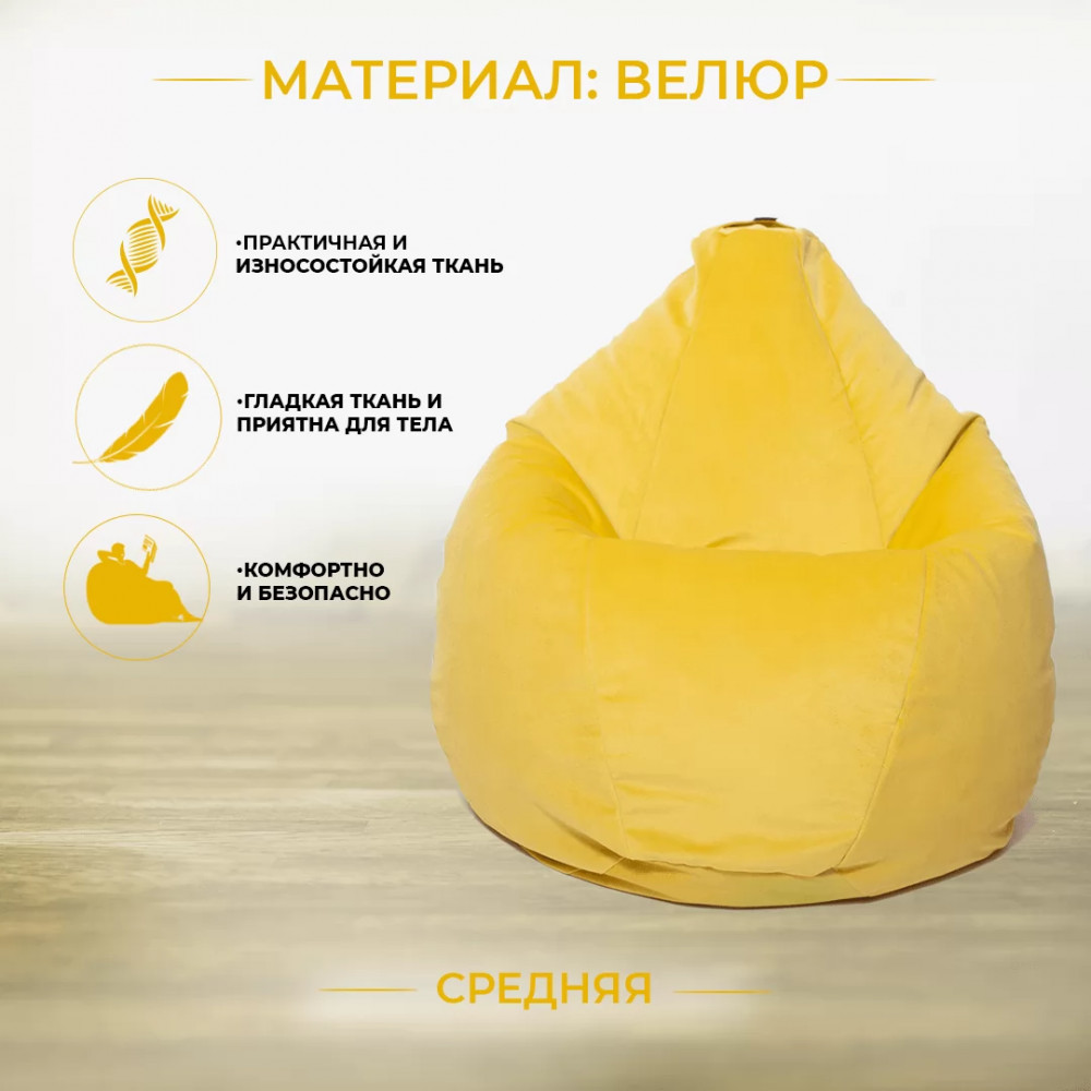Кресло-мешок Груша средняя, велюр, цвет Лимонный