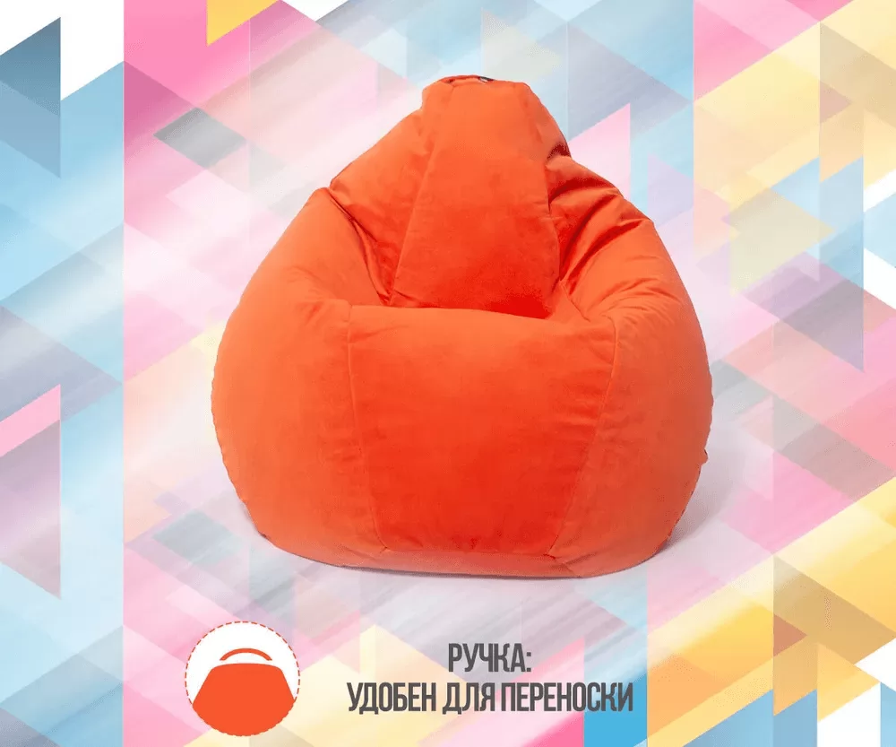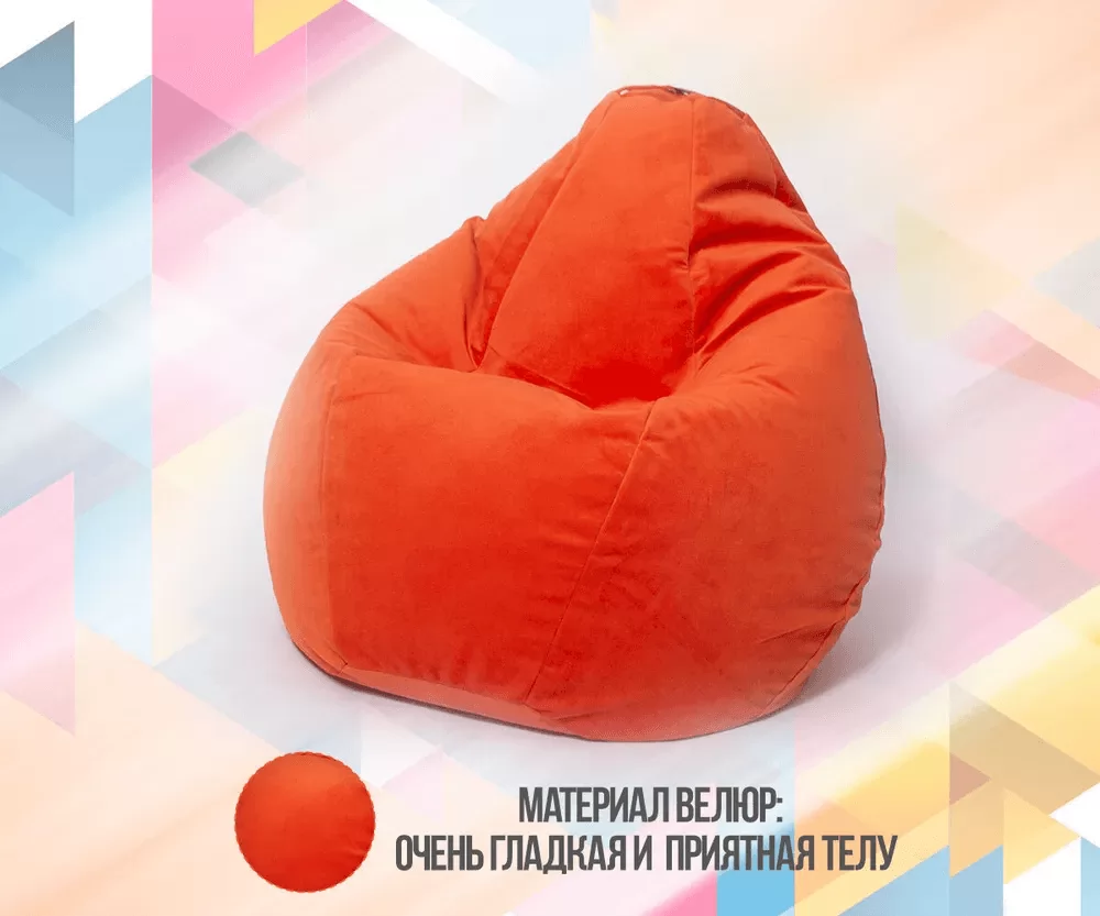 Кресло-мешок Груша средняя, велюр, цвет Оранжевый