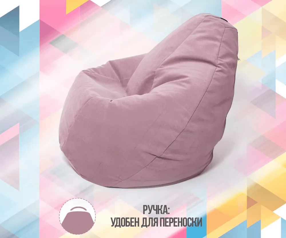Наполнено гранулами шариками пенополистирола, которые при использовании кресла принимают форму и изгибы тела, за счет чего изделие очень удобное и расслабляет спину, снимает напряжение. Благодаря такому наполнителю изделие легкое и его может перемещать даже ребенок.