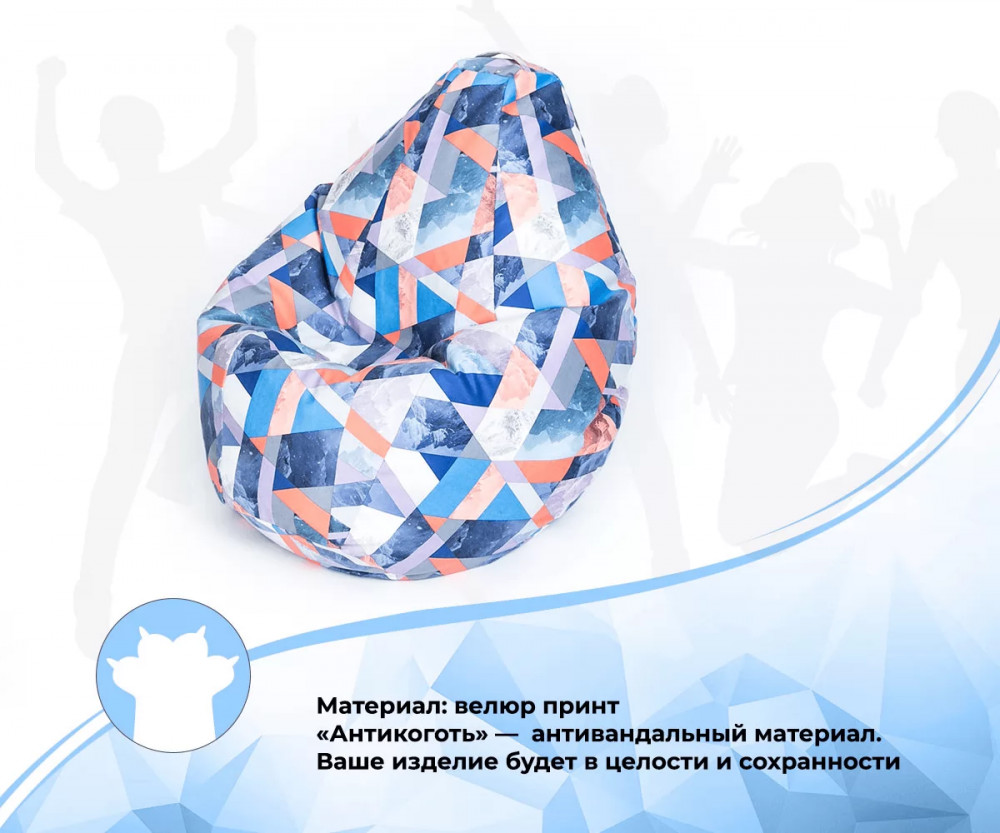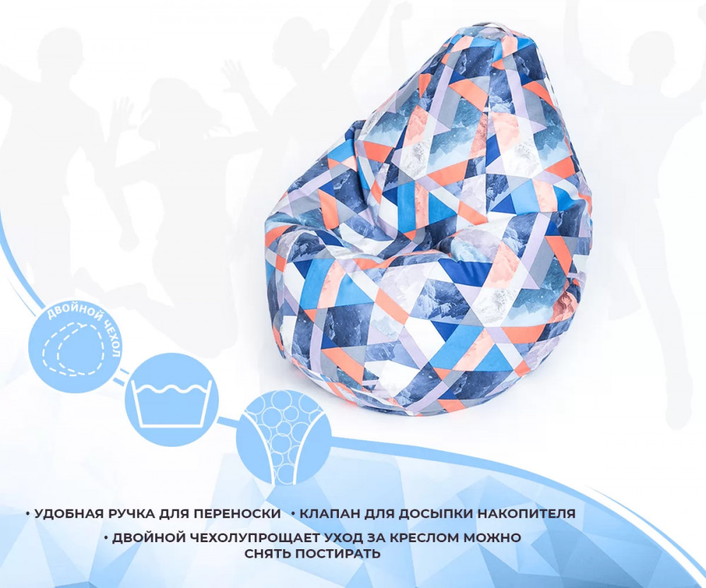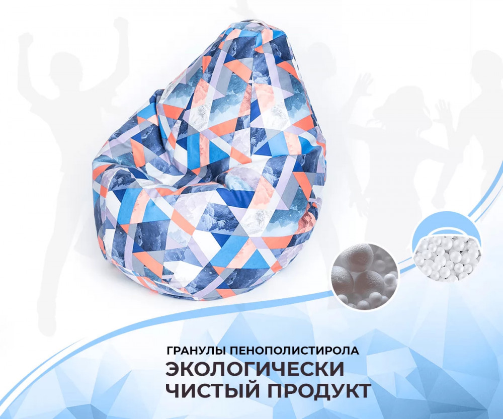 Наполнено гранулами шариками пенополистирола, которые при использовании кресла принимают форму и изгибы тела, за счет чего изделие очень удобное и расслабляет спину, снимает напряжение. Благодаря такому наполнителю изделие легкое и его может перемещать даже ребенок.