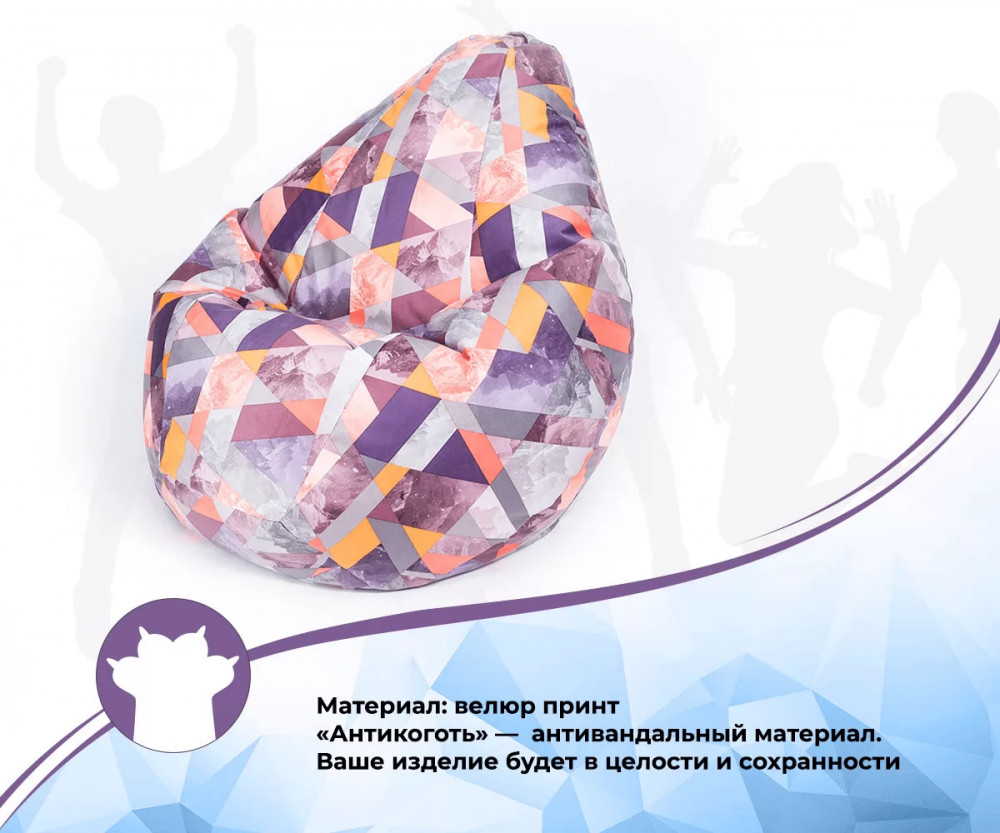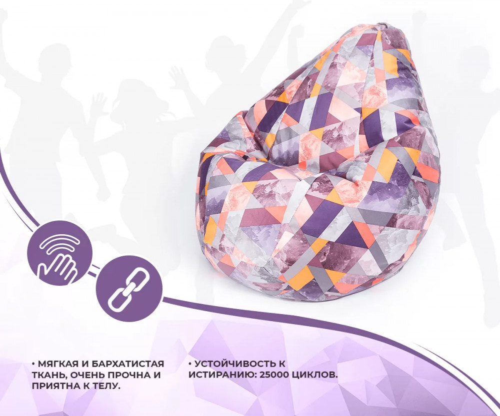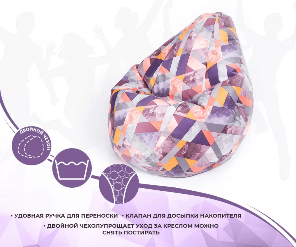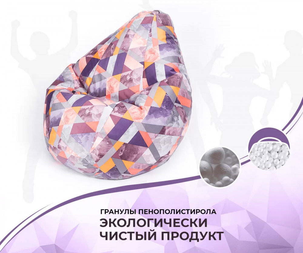 Наполнено гранулами шариками пенополистирола, которые при использовании кресла принимают форму и изгибы тела, за счет чего изделие очень удобное и расслабляет спину, снимает напряжение. Благодаря такому наполнителю изделие легкое и его может перемещать даже ребенок.
