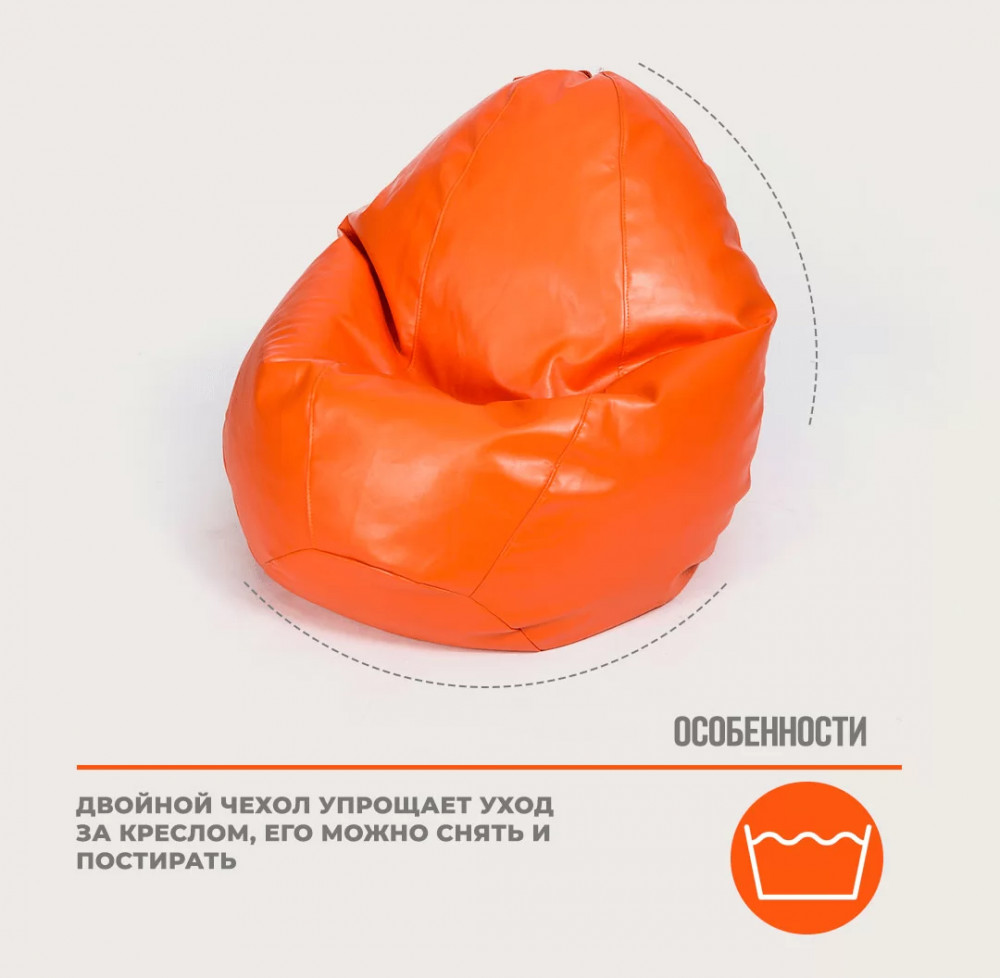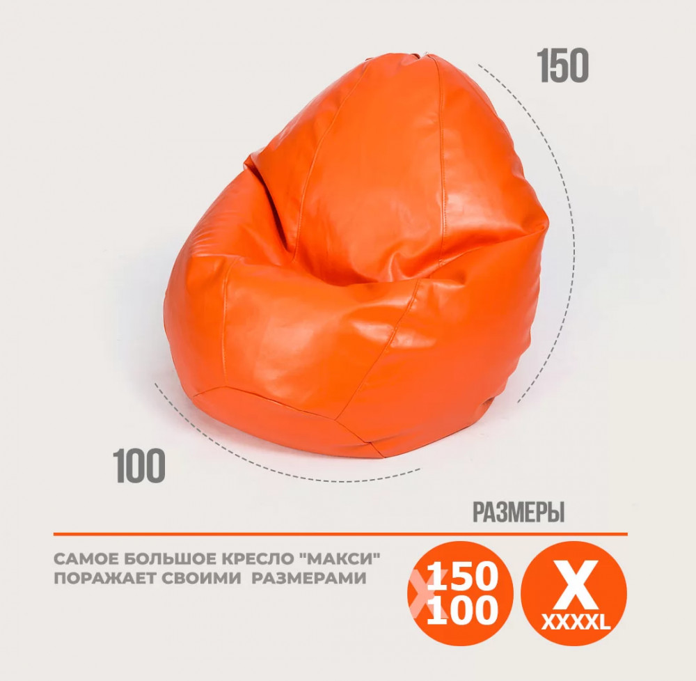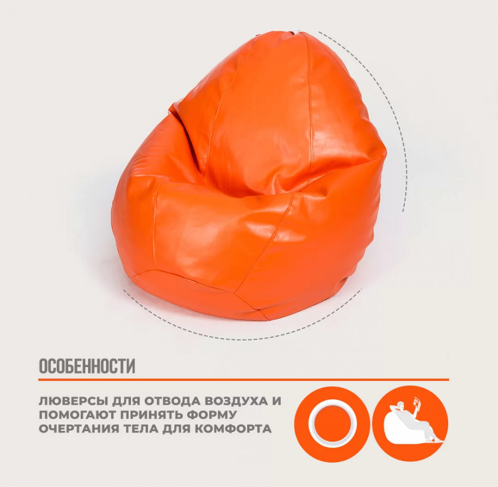 Кресло-мешок "ЛЮКС" Большая, к/з цвет оранжевый