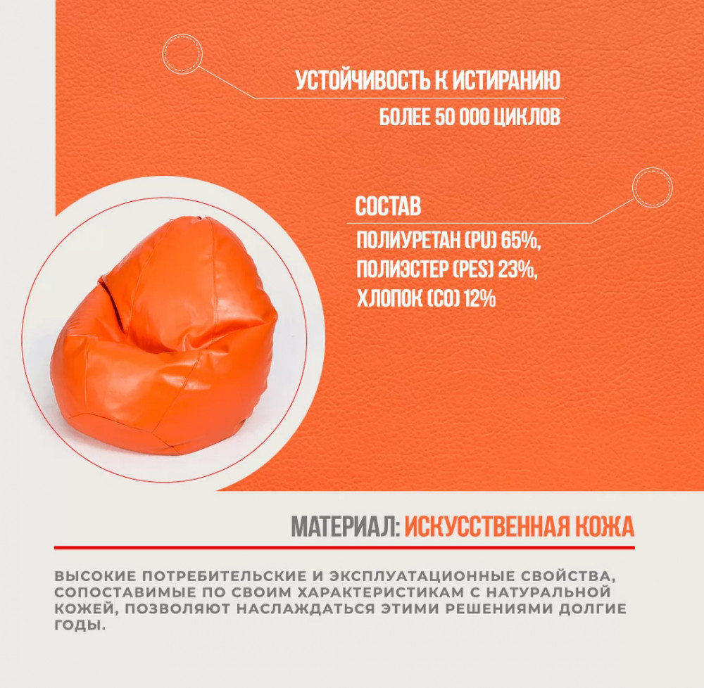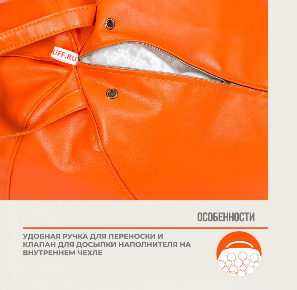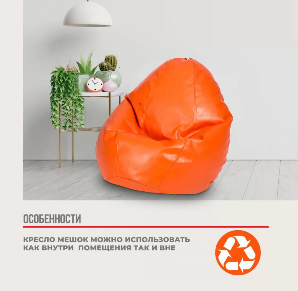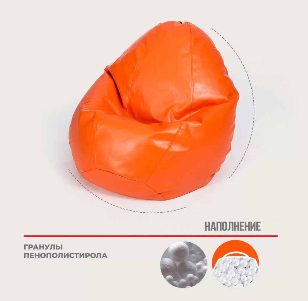 Кресло-мешок "ЛЮКС" Большая, к/з цвет оранжевый