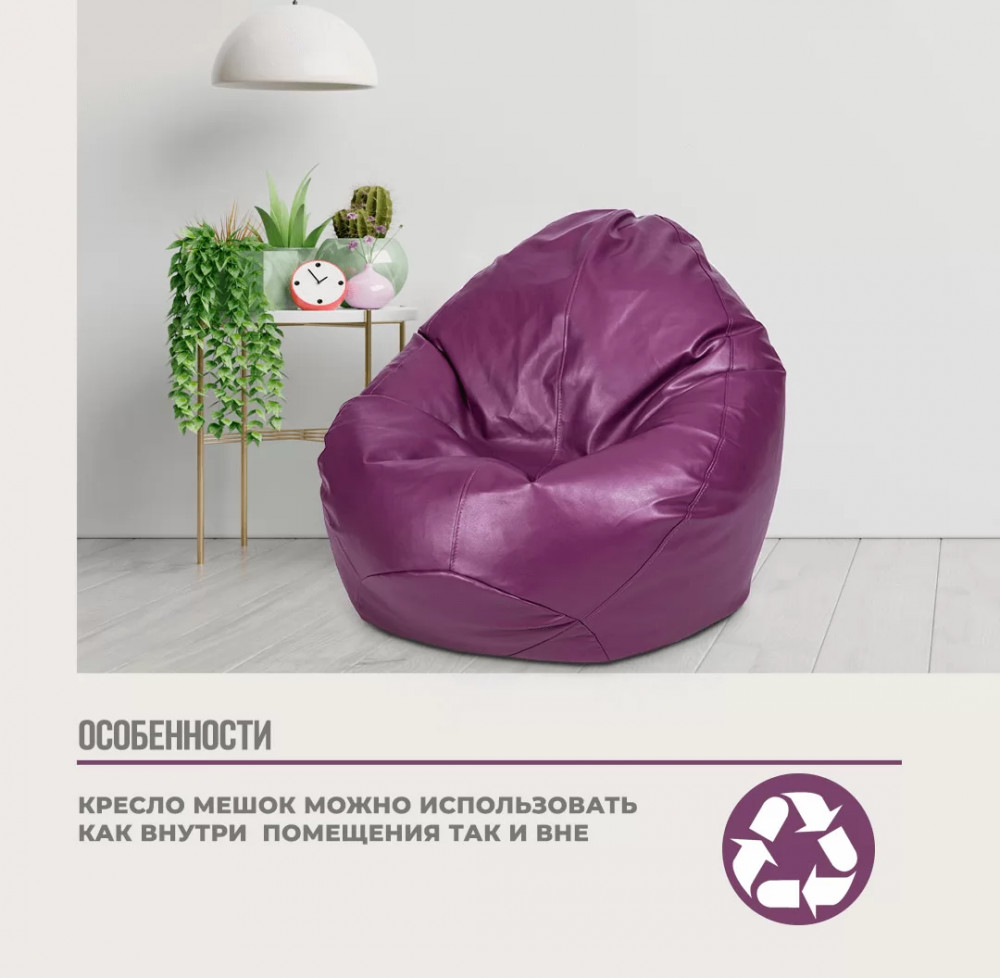 Кресло-мешок "ЛЮКС" Большая, к/з цвет сливовый