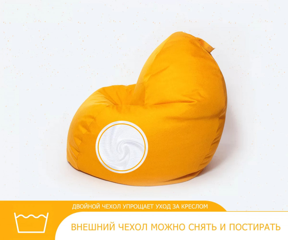 Двойной чехол упрощает уход за креслом, его можно снять и постирать. Удобная ручка для переноски и клапан для досыпки наполнителя на внутреннем чехле.