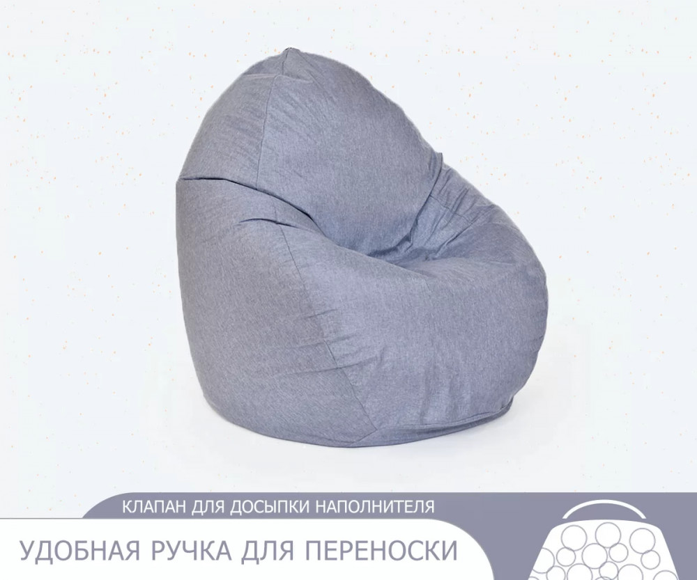 Двойной чехол упрощает уход за креслом, его можно снять и постирать. Удобная ручка для переноски и клапан для досыпки наполнителя на внутреннем чехле.