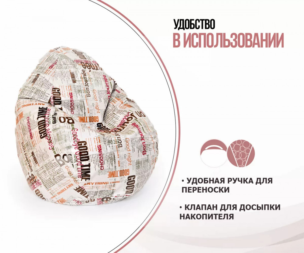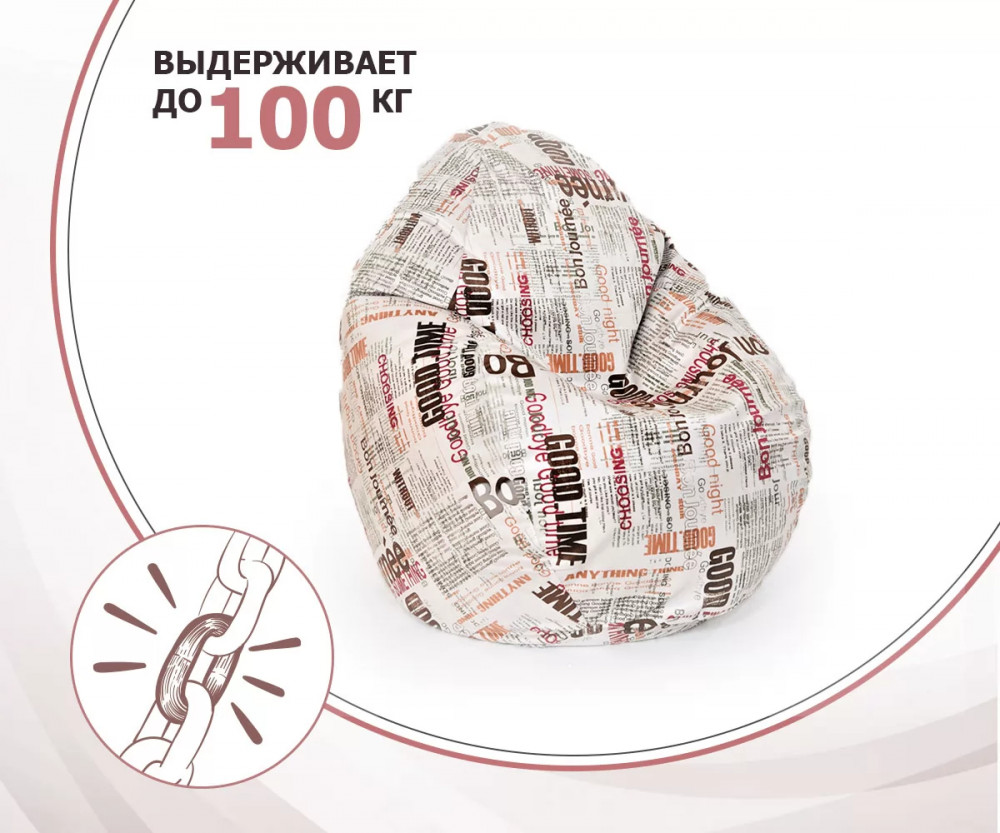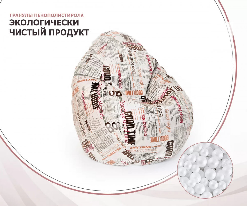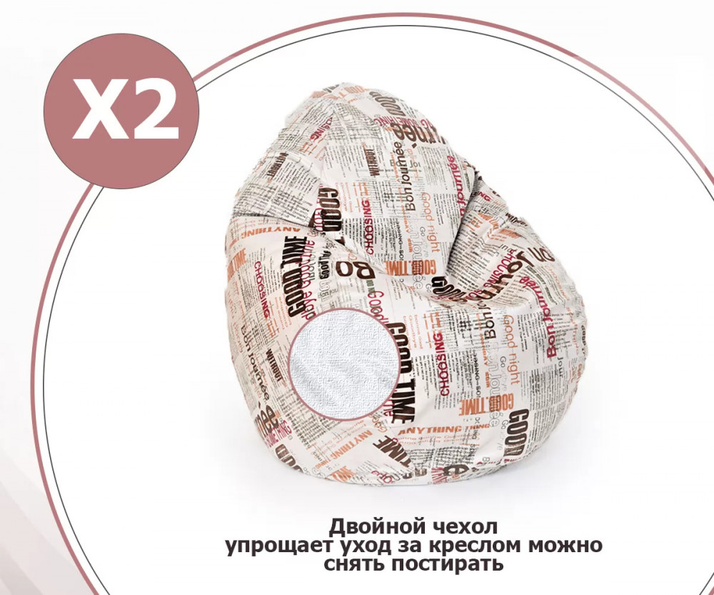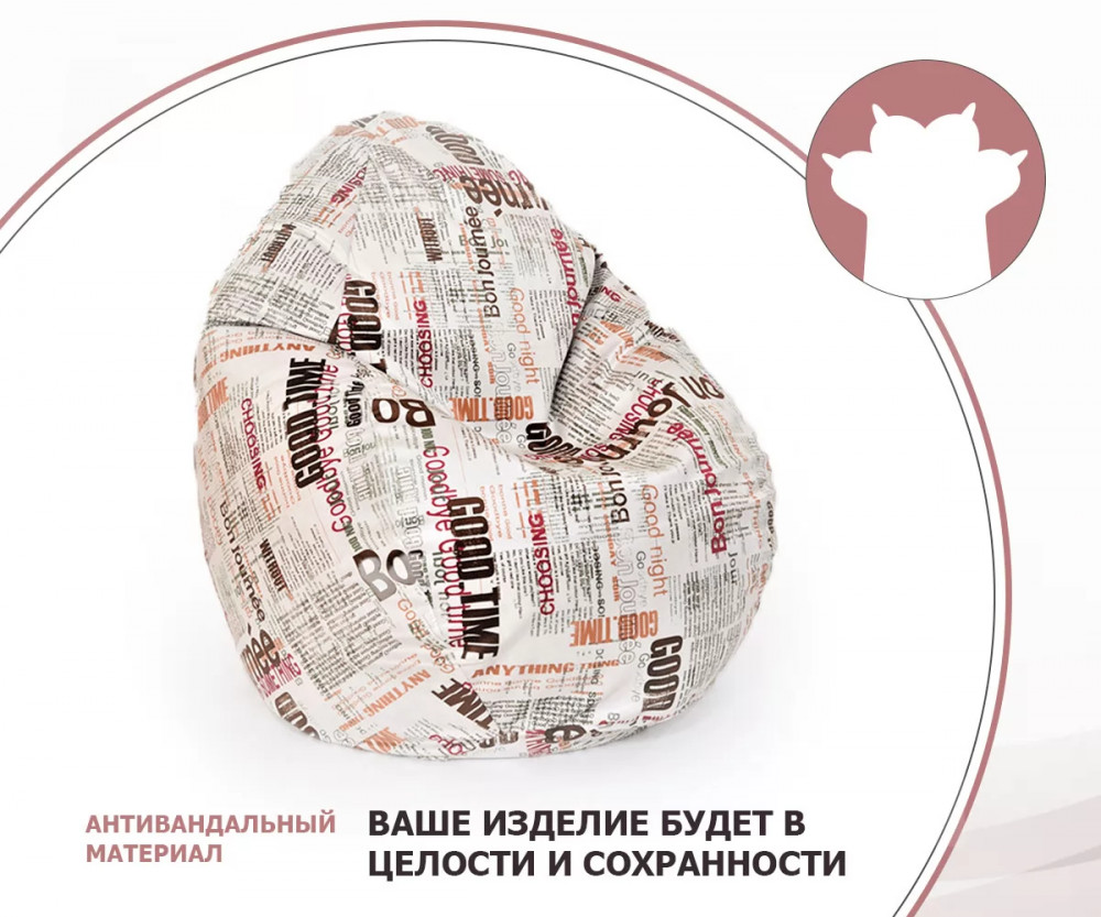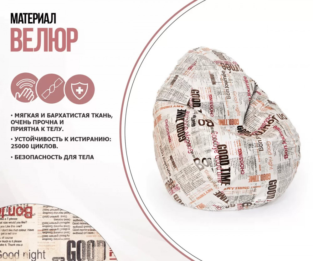 Кресло-мешок СТАДИ, велюр, Принт Газета