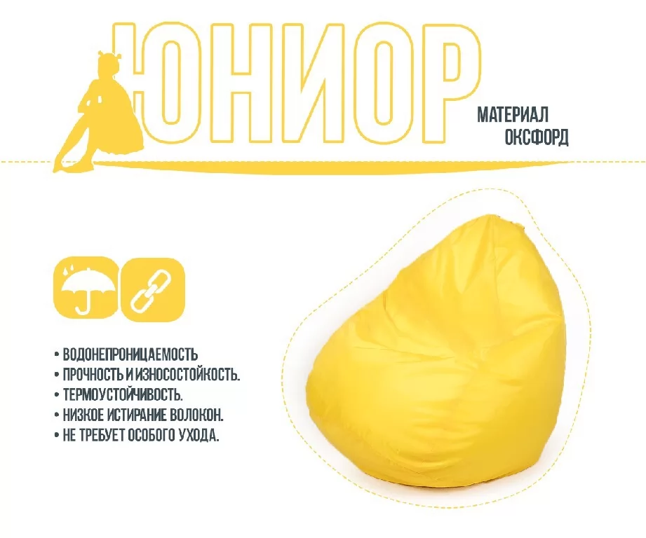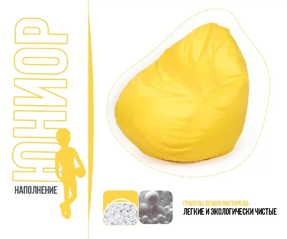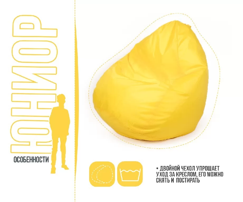 Кресло-мешок Юниор, водоотталкивающая ткань, цвет желтый