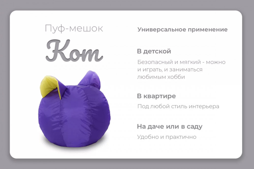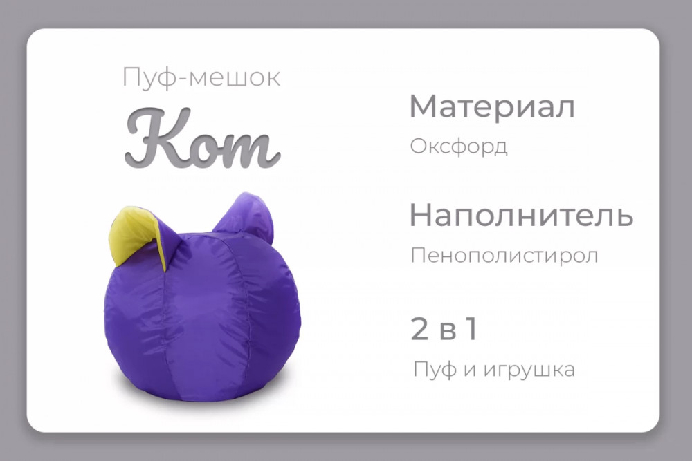 Пуф-мешок "Кот" малое, цвет фиолетово-желтый