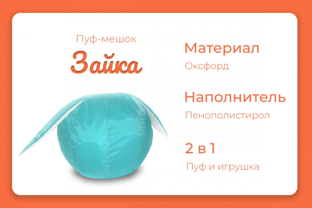 Пуф-мешок "Зайка" малое, цвет бирюзово-белый