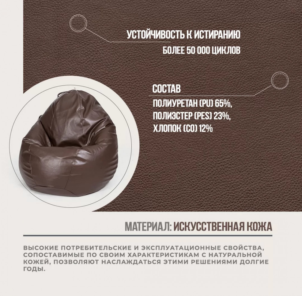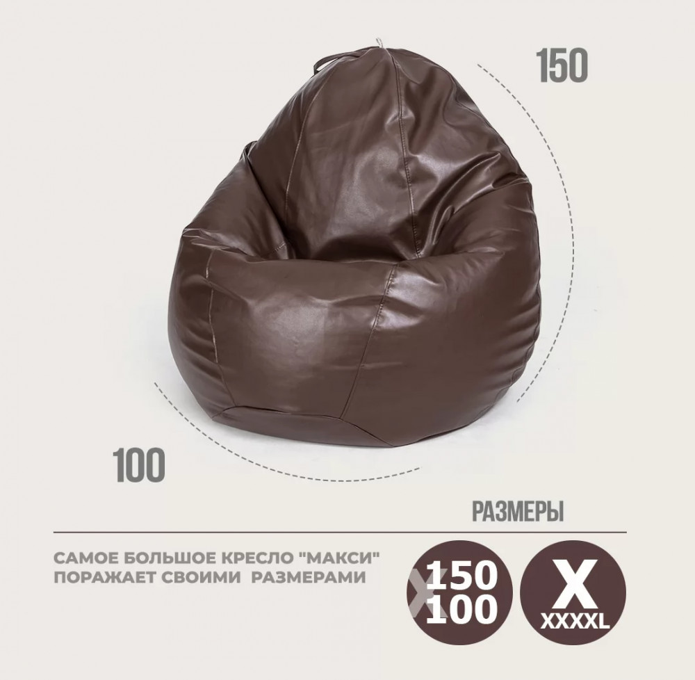 Кресло-мешок "ЛЮКС" Большая, к/з цвет шоколадный
