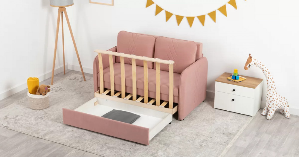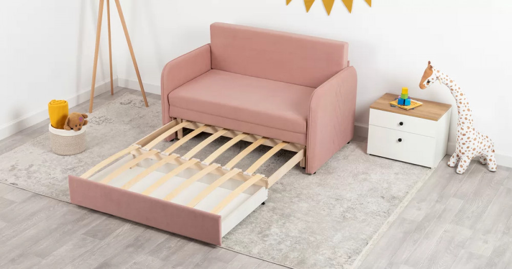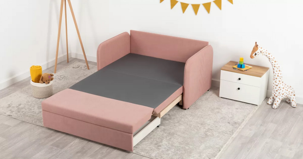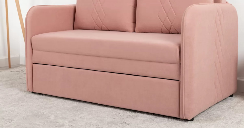 Стильный компактный диван для детской и гостиной. При своих скромных размерах он трансформируется в полноценное спальное место для детей и подростков. Лаконичный дизайн в виде декоративной отстрочки подчеркивает фактуру велюра, а небольшие размеры позволят разместить его в любом пространстве.
