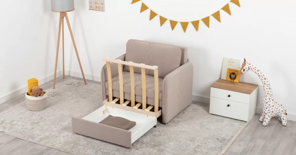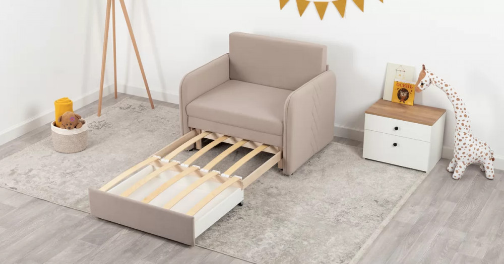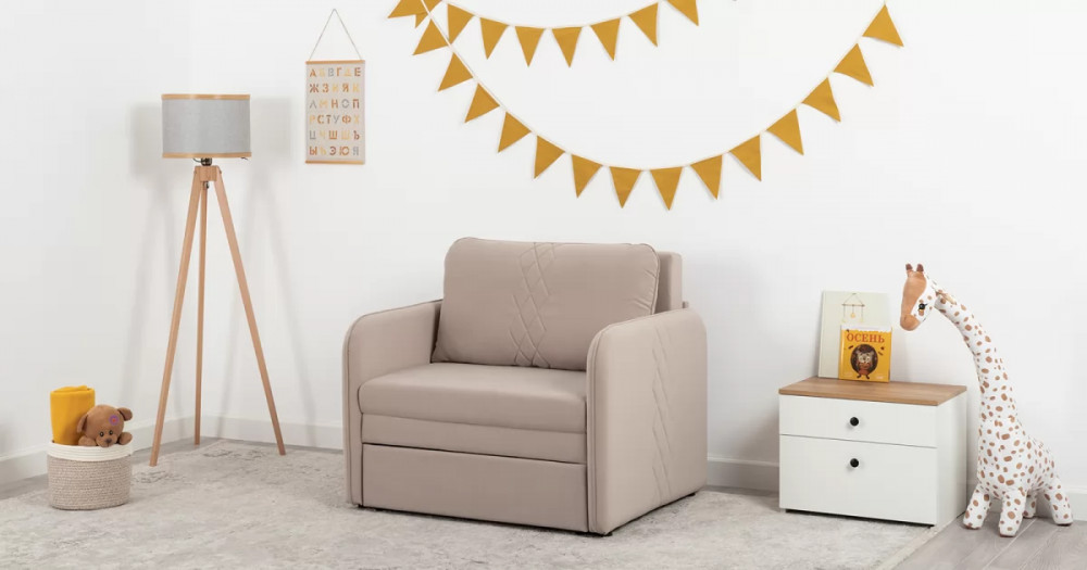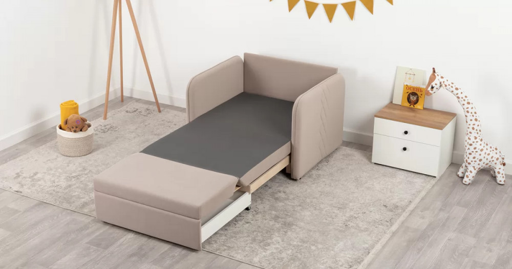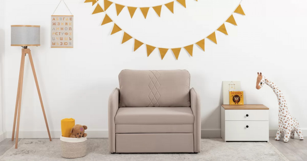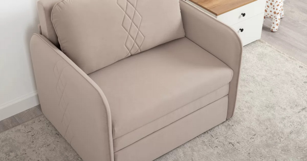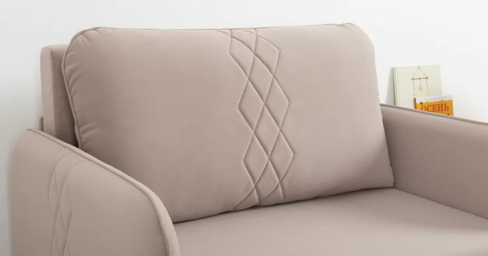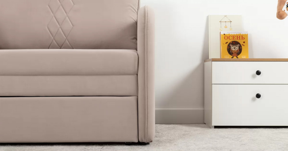 Стильный компактный диван для детской и гостиной. При своих скромных размерах он трансформируется в полноценное спальное место для детей и подростков. Лаконичный дизайн в виде декоративной отстрочки подчеркивает фактуру велюра, а небольшие размеры позволят разместить его в любом пространстве.