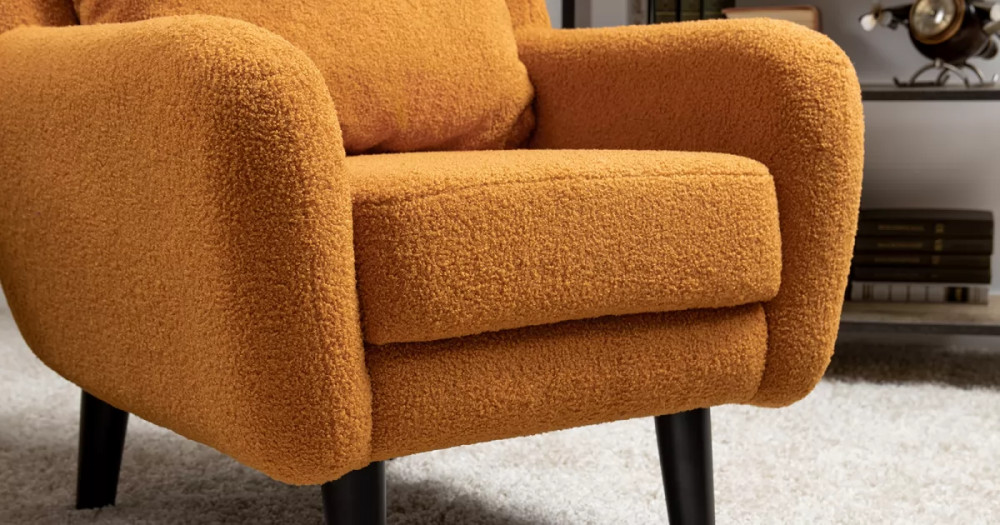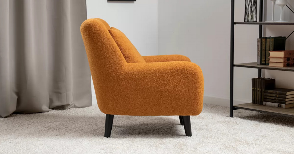 Кресло Шон станет вашим любимым местом для отдыха. Мягкое кресло с удобной спинкой даст вам расслабиться и отдохнуть. Благодаря небольшим размерам кресло подходит для многих современных квартир-студий или небольших комнат. Ткань букле делает кресло особенно уютным и мягким. Приспинная подушка в цвете кресла.