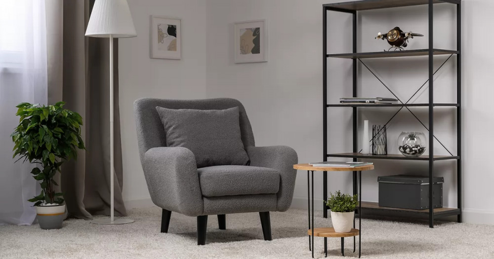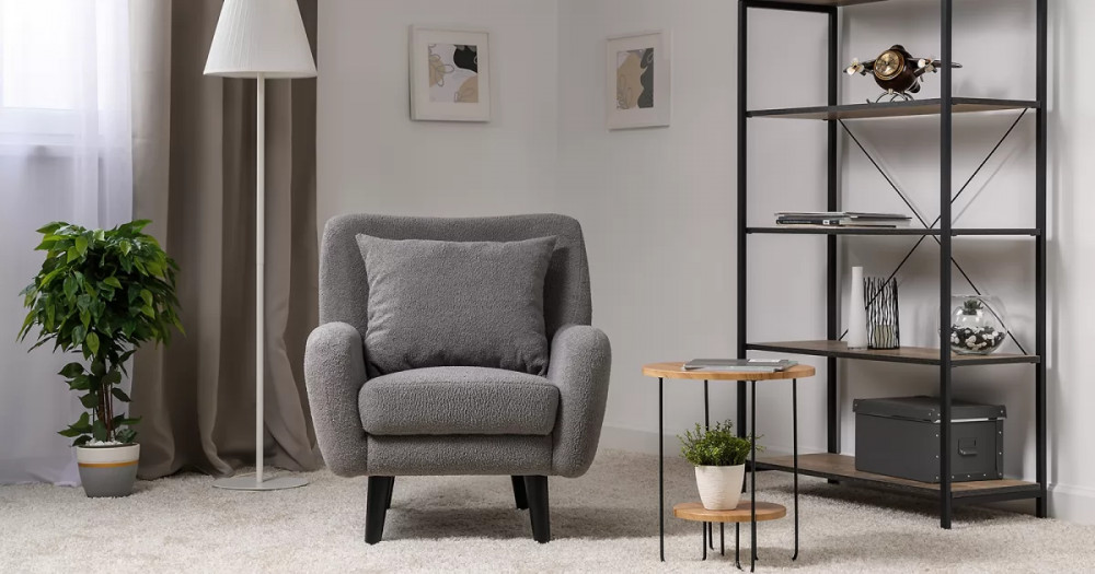 Кресло Шон станет вашим любимым местом для отдыха. Мягкое кресло с удобной спинкой даст вам расслабиться и отдохнуть. Благодаря небольшим размерам кресло подходит для многих современных квартир-студий или небольших комнат. Ткань букле делает кресло особенно уютным и мягким. Приспинная подушка в цвете кресла.