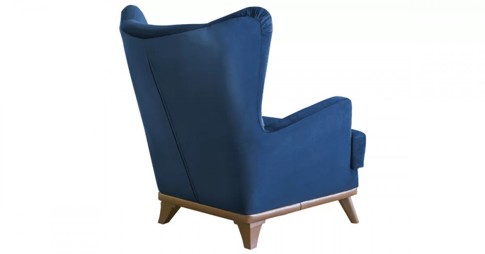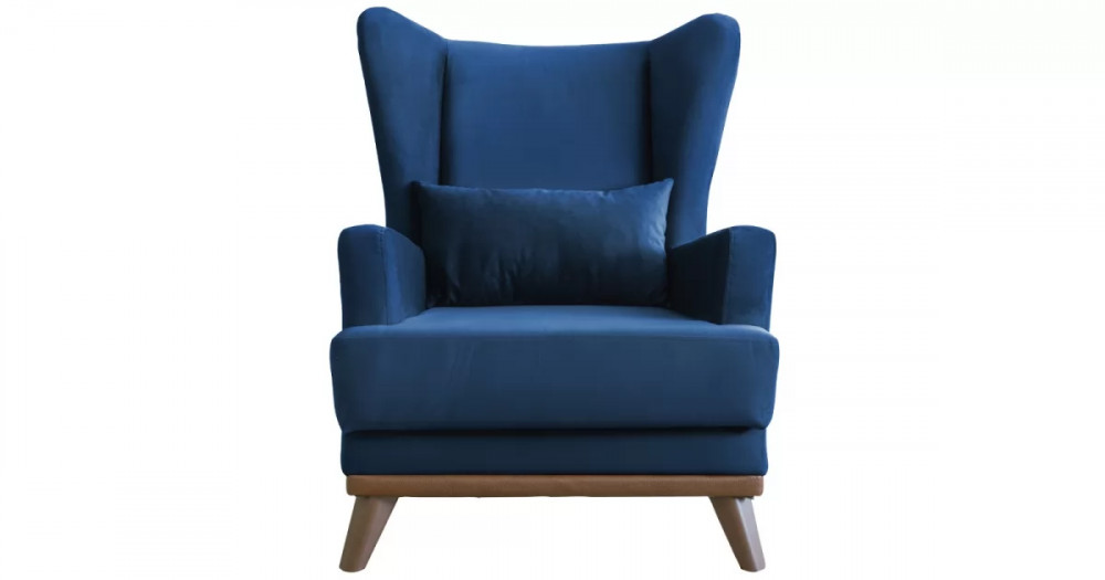 Высокая спинка с наклоном и мягкие подлокотники обеспечивают удобную посадку, дополнительный комфорт создает декоративная подушка. Царга кресла обтянута искусственной кожей в цвет опорам.