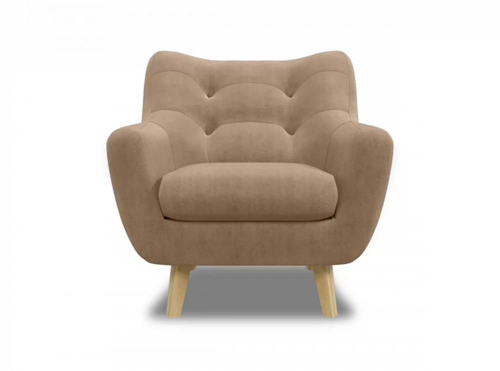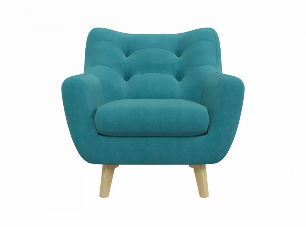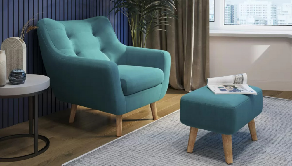 Опоры кресла изготовлены из натурального дерева, смотрятся стильно и облегчают процесс уборки в комнате.