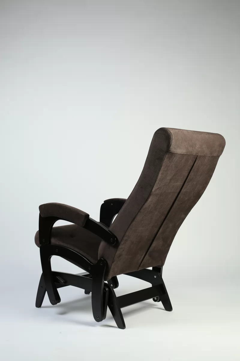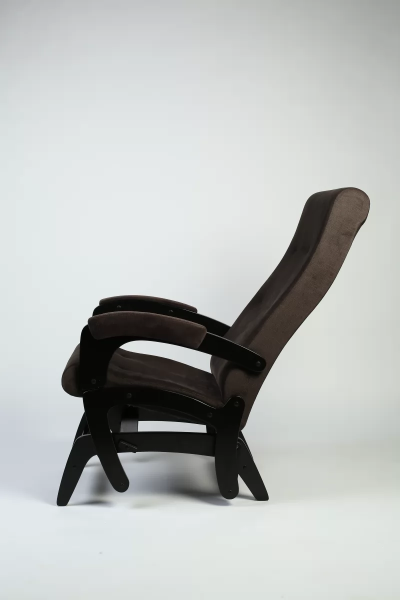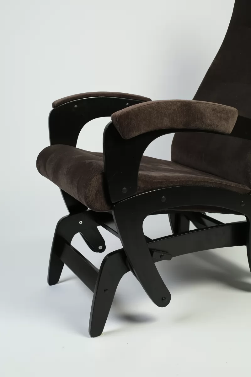Для комфортного отдыха имеет маятниковый механиз маятник, который выполняет классическую функцию покачивания, при этом она не оставляет вмятин на напольном покрытие. Кресло обтянуто искусственной кожей, смотрится современно и стильно, каркас-дерево, боковины выполнены в виде криволинейных деталей, образующих ножки-опоры, материал боковины фанера. На боковинах имеются мягкие подлокотники.