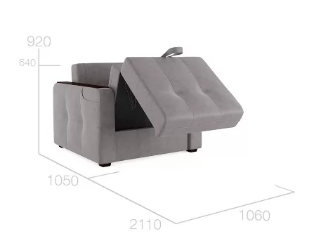 Кресло – кровать коллекции «SMART» - стильное и современное, с лаконичными прямыми формами, легко превращается в полноценное спальное место и так же быстро собирается обратно. Удобный механизм раскладывания "Каскад" не требует отодвигания от стены и работает из стационарного положения. Помимо односпального места и бельевого ящика модель оснащена накладками на подлокотниках, на которые удобно поставить кружку. На подлокотнике есть карман, чтобы гаджеты или книга были всегда под рукой. Модель не перегружена декором, поэтому подойдёт к большинству современных интерьеров. Можно так же заказать кресло без механизма трансформации с бельевым ящиком.