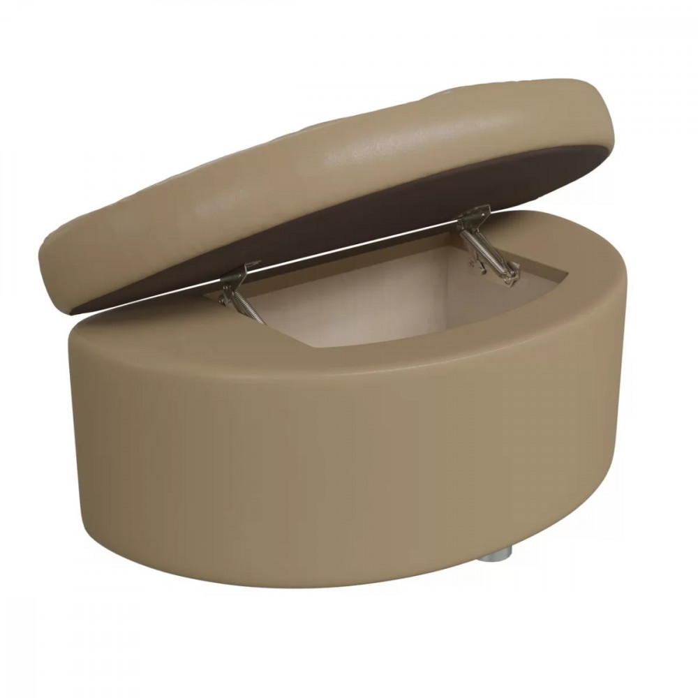 Банкетка создана в пяти цветах — бежевый, коричневый, бордовый, кофе с молоком и красный. Внутри банкетки расположен вместительный ящик для хранения разных вещей.