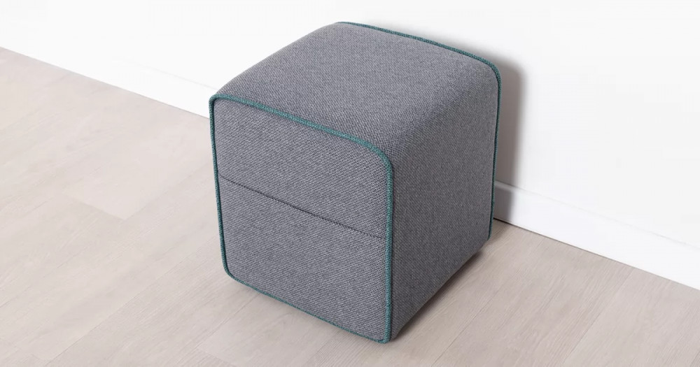 Боковые карманы на противоположных сторонах пуфа, два противоположных торца оформлены контрастным кантом