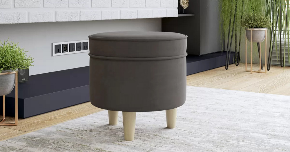 Комплект состоит из прямого и углового диванов, кресла для отдыха и пуфа.
