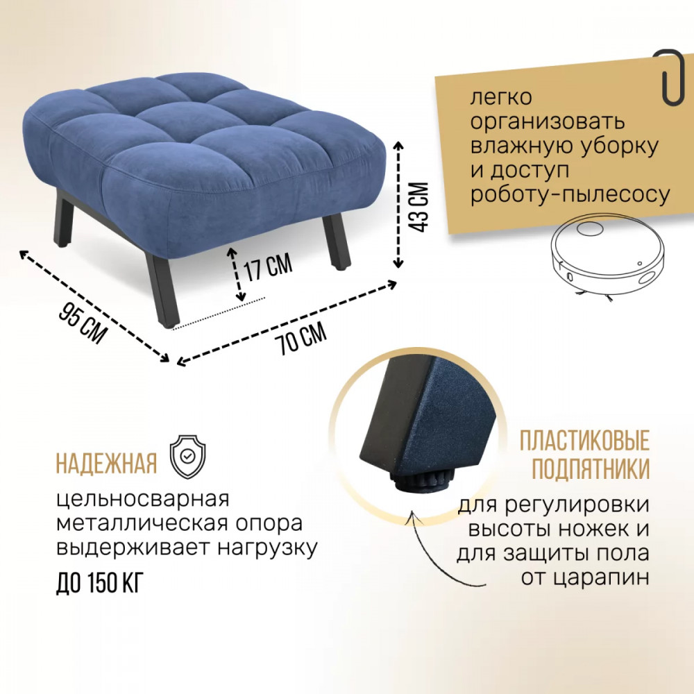 Пуф Vita прямоугольной формы 95 на 70 см, легко превратит ваш прямой диван в