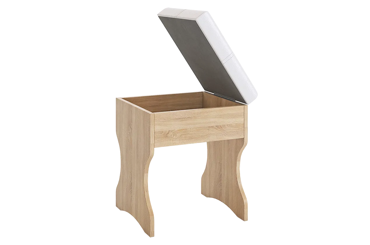 Пуф «Виктория 1» выполнено в цвете дуб Сонома и мягким сидение из экокожи. Крышка сидения съемная. В отсеке под сидением можно хранить разные мелочи.