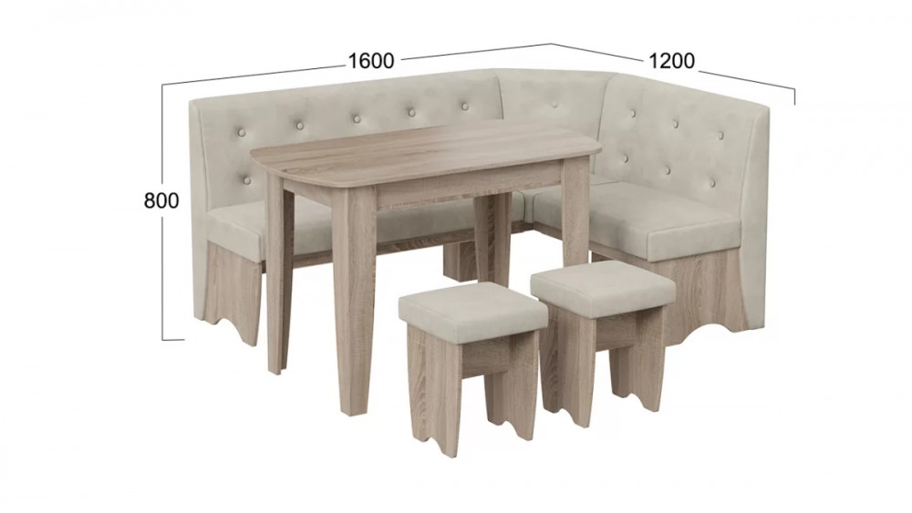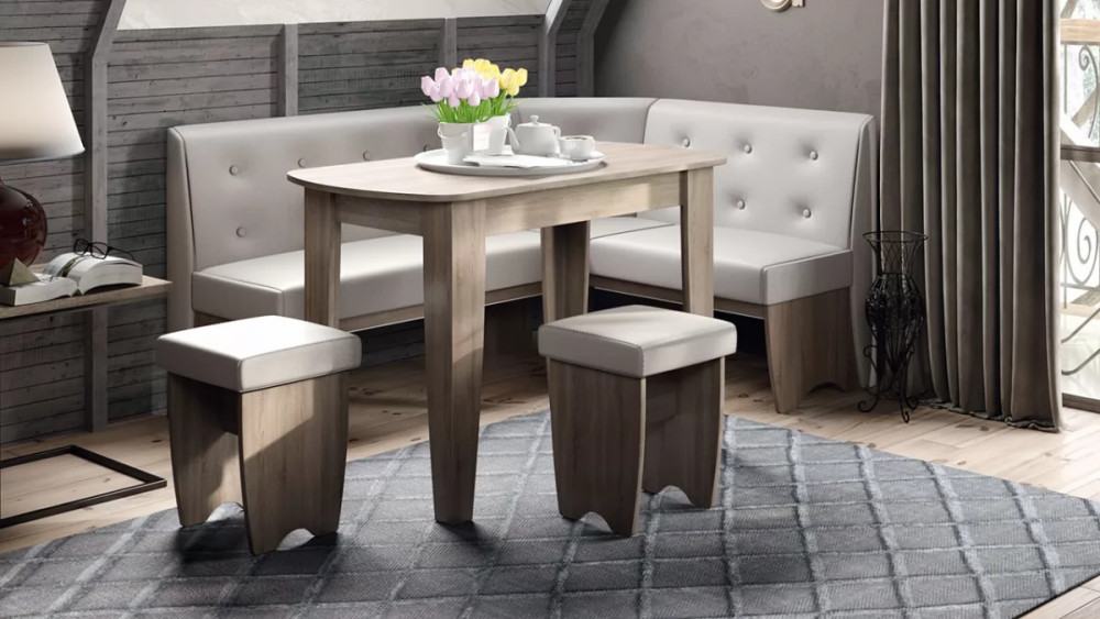 Кухонный уголок «Барселона» Дуб крафт белый, Микровелюр Duna Steel