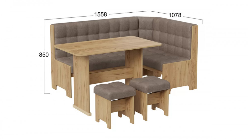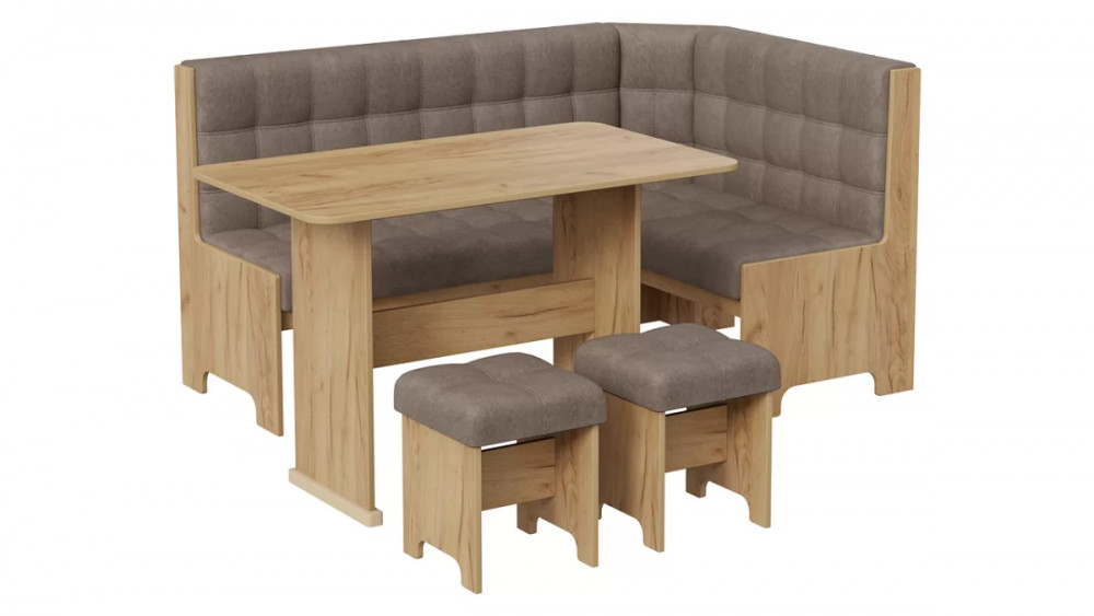 Дополнительная информация: В состав входят: стол, угловая скамья и два табурета