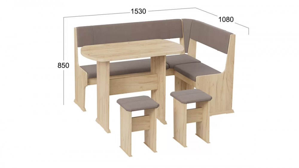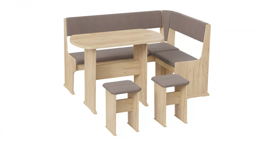 Дополнительная информация: В состав входят: стол, угловая скамья и два табурета