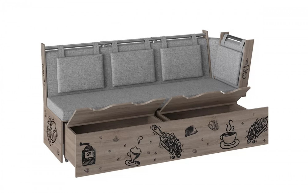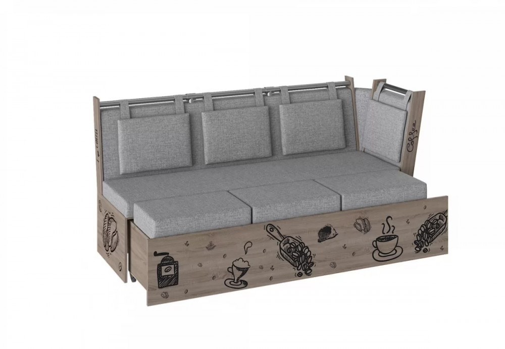 Скамья со спальным местом РОДЕНГО Рогожка Серая / Дуб Молочный