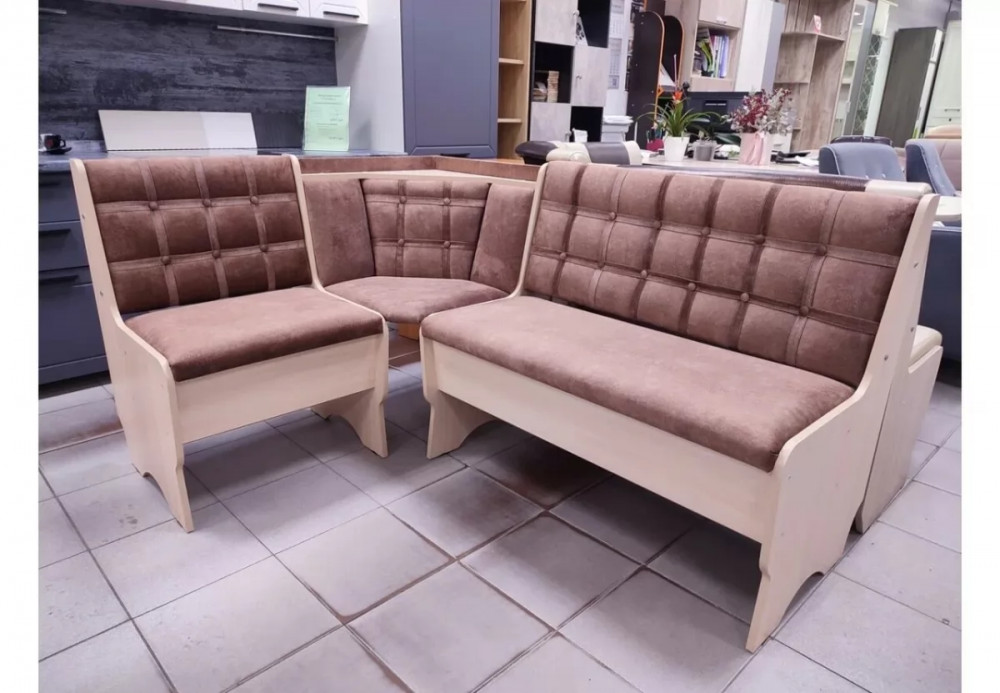 Комплект представляет собой уголок, идеально подойдут для небольшой кухни. Он включает в себя следующие особенности: