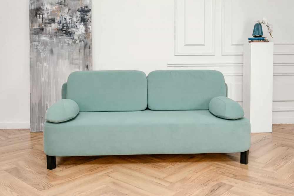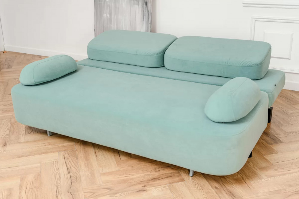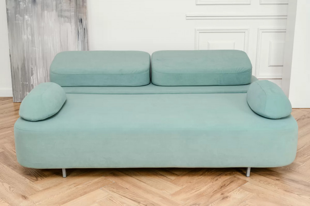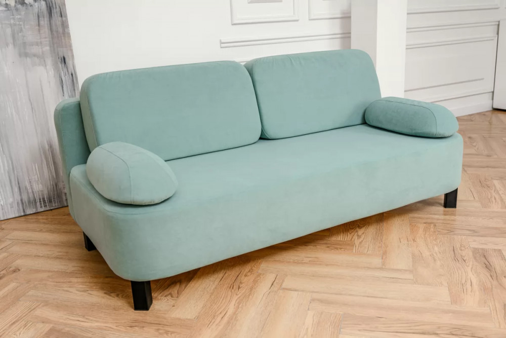 Используемая ткань - износостойкий мебельный велюр. Благодаря, бархатистому велюру диван дарит комфорт всему телу. А износостойкость ткани и лёгкий уход за ней позволяет использовать мебель без дополнительных чехлов. Одно движение руки и пролитый сок или кофе уже не оставят следа на мягкой мебели.