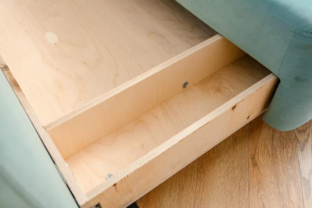 Вместительные потайные ящики в диване добавляют места для хранения.