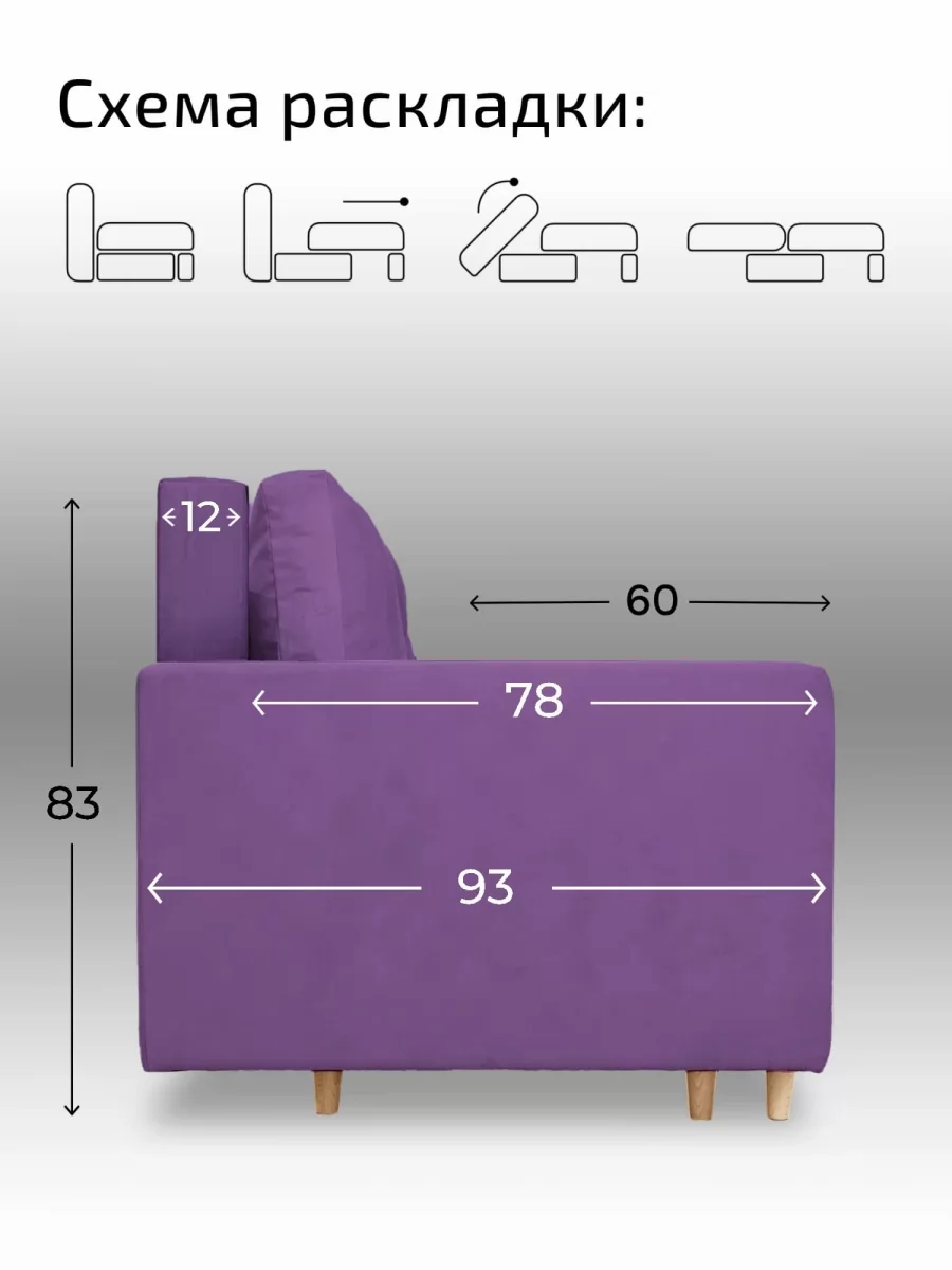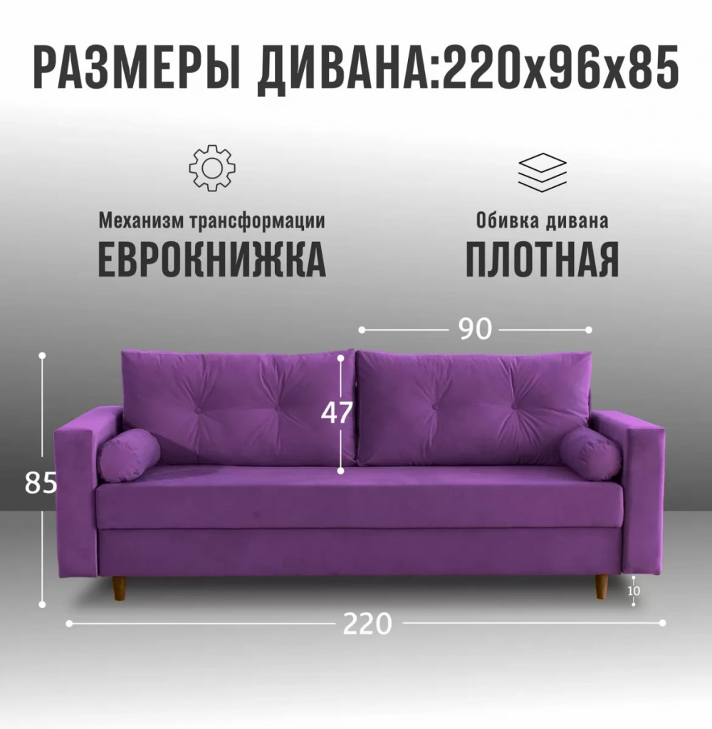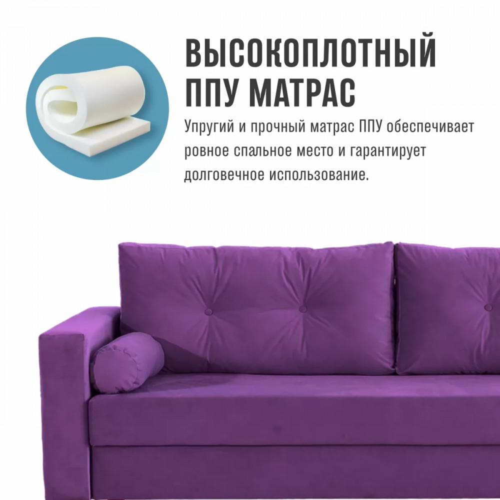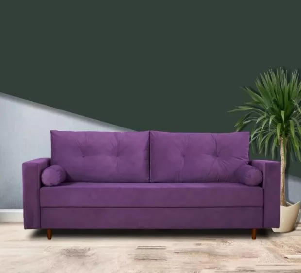 Обивка дивана выполнена в велюре прочная, не прихотлива в чистке, устойчивая, не оставляет зацепов