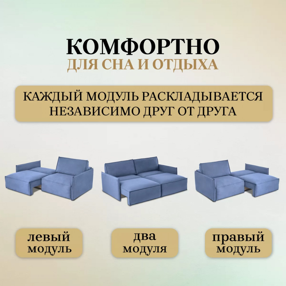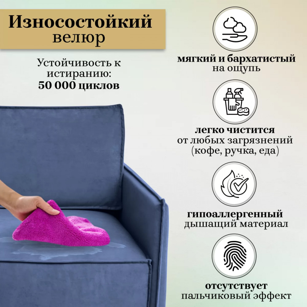 Модульный диван 9999 - Настоящий образец стиля «Либерти». Модный силуэт.Двухместный диван имеет комфортное посадочное место. Диван-кровать невероятно мягкий даже в подлокотниках, наполнен смесью ППУ и холлофайбера. Сочетание современных материалов и мягкой обивки из износостойкого велюра делают раскладной диван максимально приятным для отдыха.Диван трансформер раскладывается в полноценное двуспальное место и подходит для ежедневного сна. Очень практичный механизм. Для того чтобы разложить выкатной диван, нужно просто выдвинуть сидение на себя и опустить спинку, получив таким образом ровное спальное место. В основании сиденья и спинки находится блок независимых пружин. Сверху – эластичный пенополиуретан и комфортный слой периотека, добавляющие упругости и комфортности. Для хранения белья есть вместительный ящик под сиденьем.Выдвижной диван 9999 прекрасно подойдет для студий, комнат, детской, кабинета, офиса. На таком диване обязательно захочется отдохнуть и расслабиться.