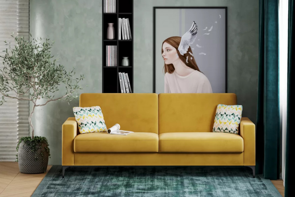 Диван-кровать Алекс 3т Модель 047 Велюр Геометрия 69/Велюр Ультра мустард