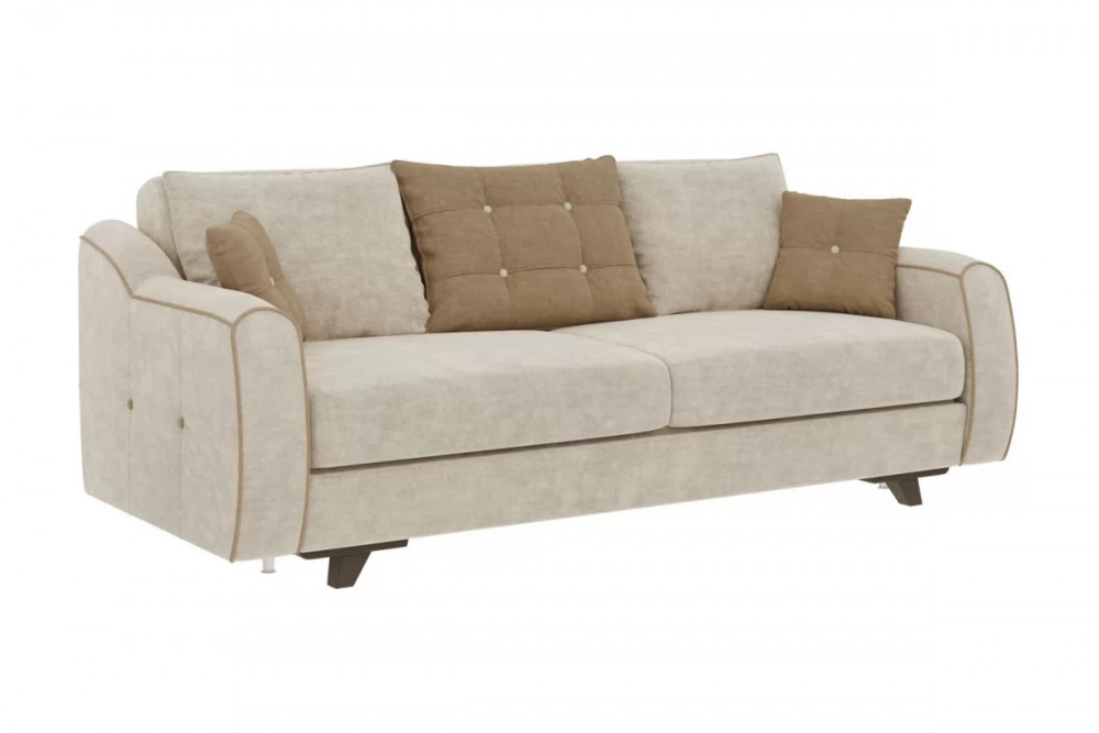 Несколько движений - и диван-кровать превращается в удобное спальное место, а независимый пружинный блок способствует приятному и здоровому сну. В просторный ящик для постельного белья поместится немало принадлежностей для сна.<br /> Стиля модели добавляют контрастные подушки и строчки по периметру отделки. Мягкий кофейный оттенок делает общий дизайн более сдержанным и лаконичным, в то же время обращая на себя внимание.