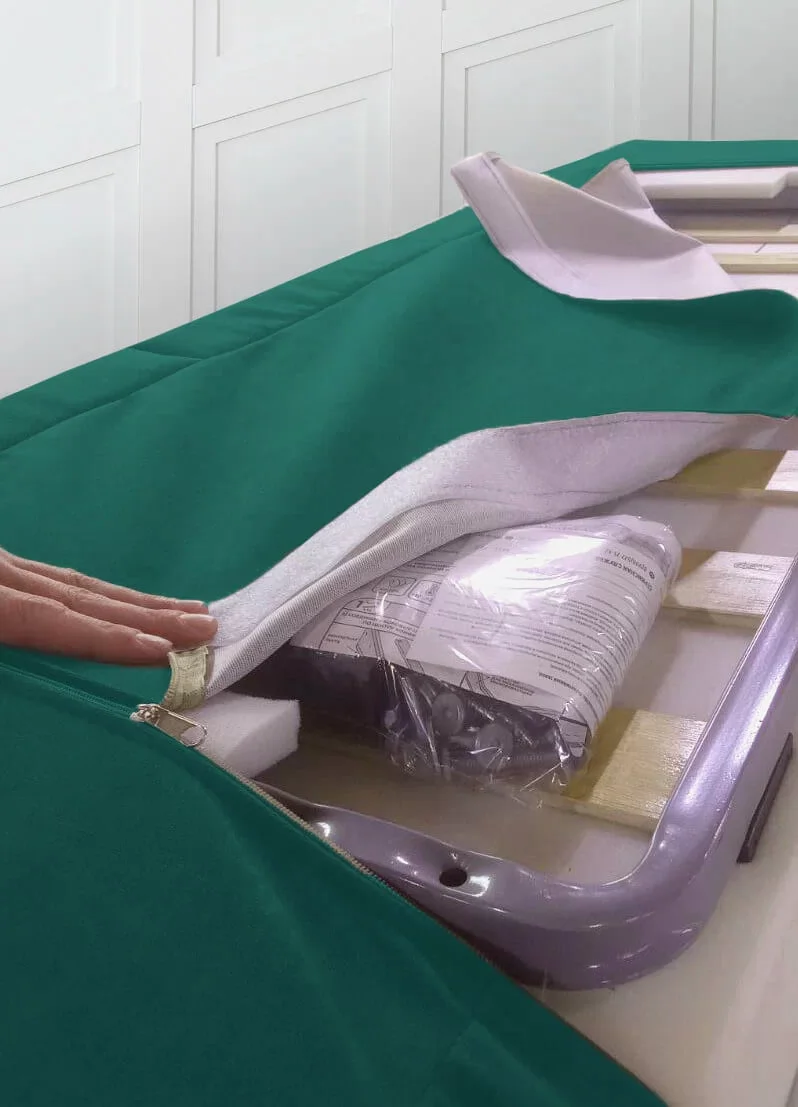Составляющие: металлокаркас, ламели, наполнение дивана ППУ (поролон), съёмный чехол.